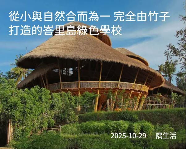 在自然探索帶領孩子長大的森林學校,受到不少家長的歡迎,位於印尼峇里島烏布山間叢林中的Green School Bali,是一所以永續發展為核心理念的國際學校,校園建築全部採用竹子構造,發展出融合環境教育與實作體驗的創新課程,因此受到許多國家的喜愛。