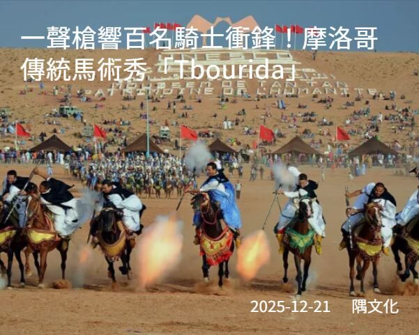 馬是人類過去在戰爭的重要夥伴,電影裡時常能見到騎兵衝鋒的畫面,如今這種壯闊的畫面在北非仍然能看見。像是對馬情有獨鍾的摩洛哥,就有經典的馬術表演「Tbourida」(又稱Fantasia),常有大大小小的賽事,是當地重要的傳統文化。