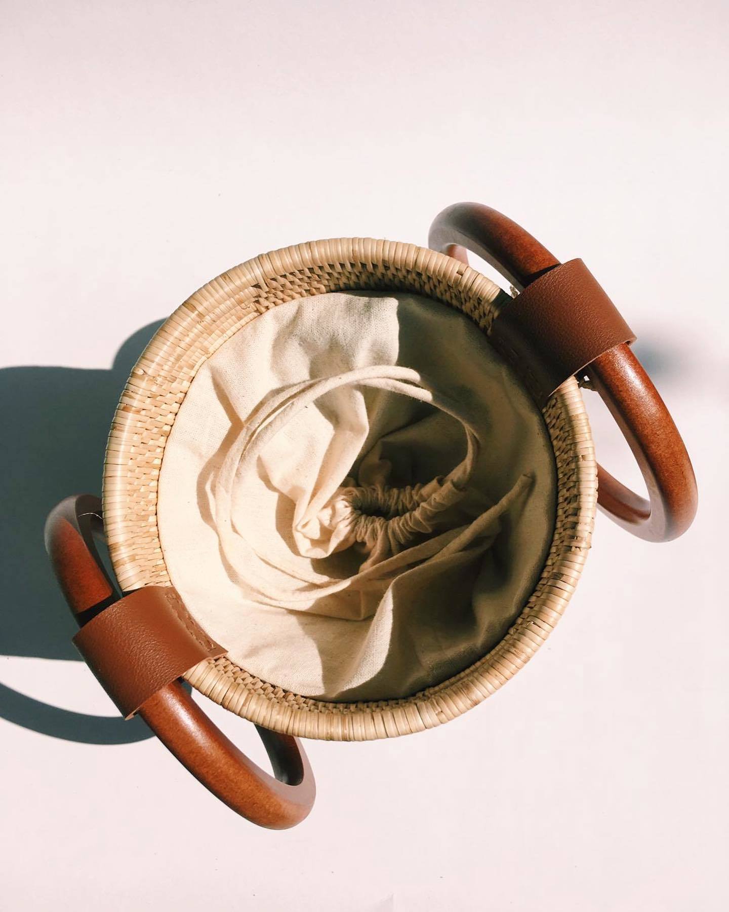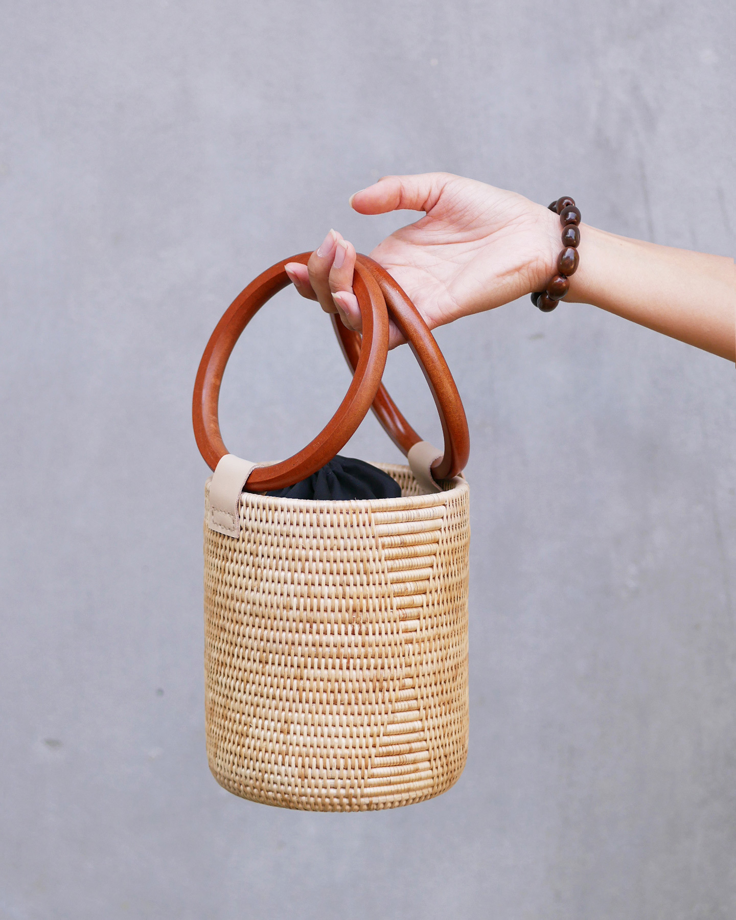 來自柬埔寨婦女親手編織的柳藤木質提包,運用當地盛產的柳草與藤類植物,搭配圓形的木質手柄,獨特的設計使人眼睛一亮。不管是作為上班午休時間,外出吃飯的零錢隨身包、或是假日出門採買物品時的小提籃,結合時尚、生活與工藝手作,堅固的柳藤編織更讓人能安心的擺放貴重物品,兼顧質感設計與實用性。