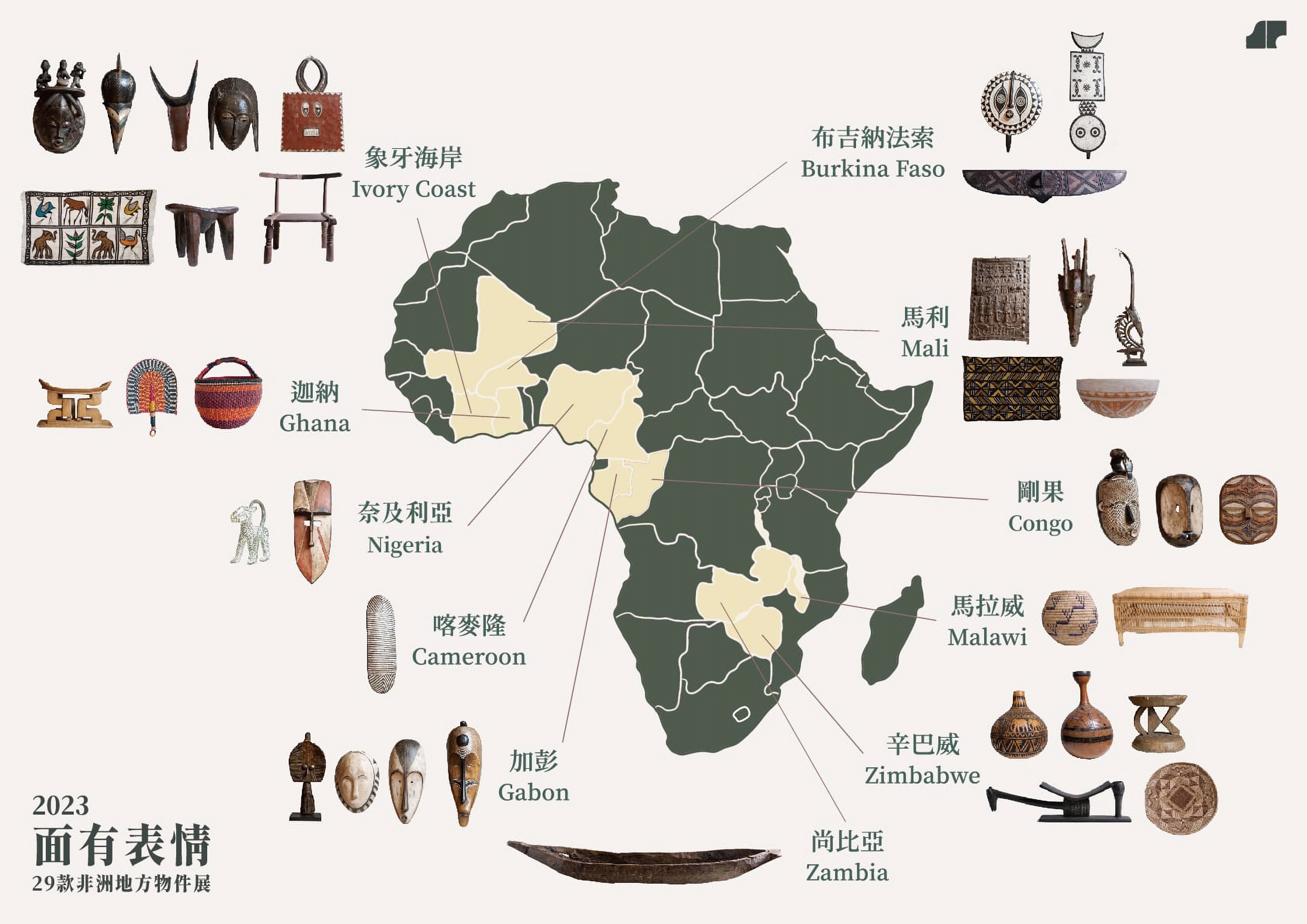 大多數非洲面具如今已不再與神靈的神秘力量聯繫在一起,脫離最初使用的目的和用途後,它豐富的表情吸引了人們的目光,進而引發收藏之心。希望透由本次展覽中近20款各異其趣的非洲面具們,引領大家認識它們表情背後的獨特文化。