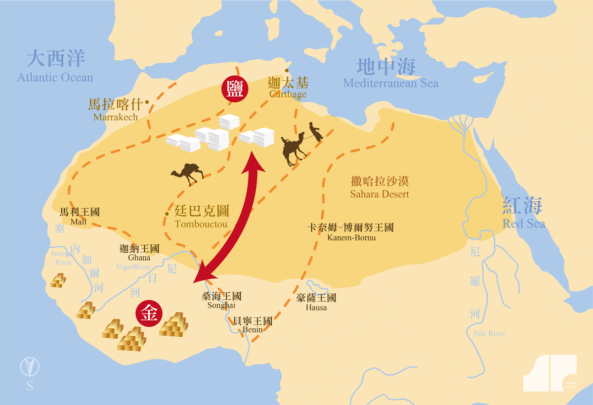 柏柏人在伊斯蘭化後,也連接進當時伊斯蘭世界的龐大貿易網絡,原先建立的小型貿易路線,順勢深化而成貫穿撒哈拉沙漠南北的金鹽貿易路線。當時金鹽貿易有兩條路線:一條主線從摩洛哥至尼日河灣,另一條副線則是從突尼西亞通往查德湖。金鹽貿易持續了七、八百年之久,從沙漠南北兩端進行貿易,數千甚至上萬隻駱駝組成的商隊絡繹不絕,交替運載著黃金、岩鹽與奴隸等。