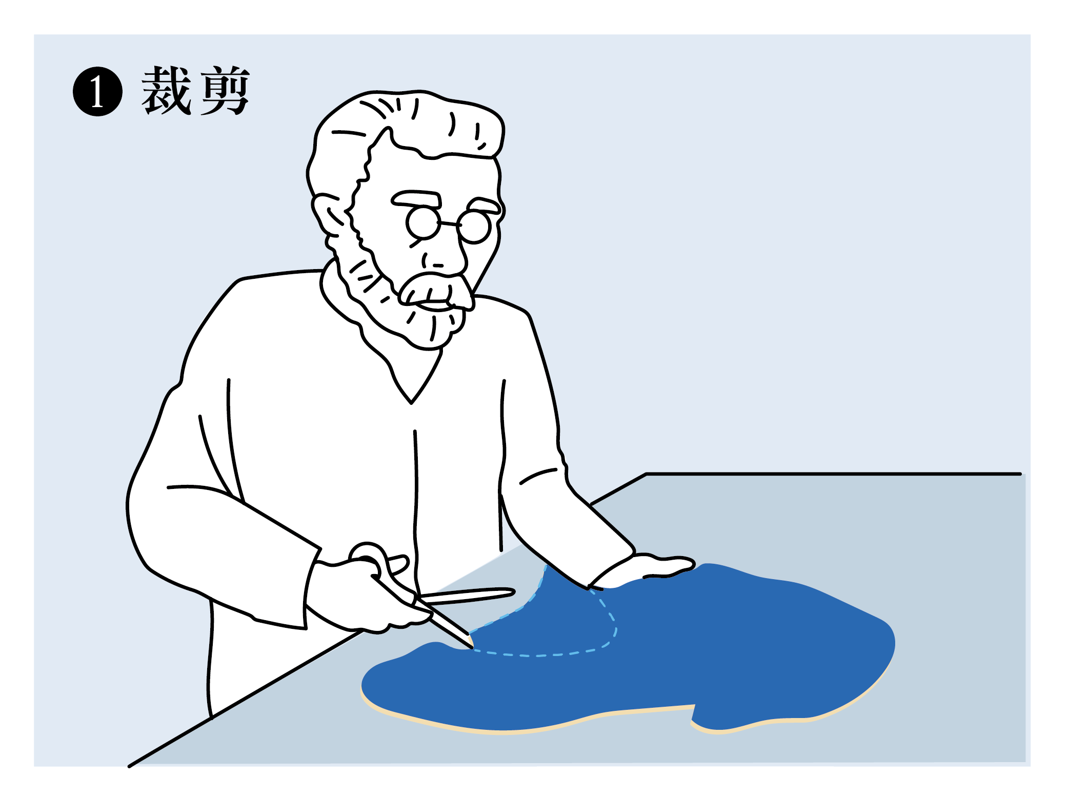 𝟙 裁剪:每張皮革畫出鞋的形狀,依照鞋型裁剪下來。