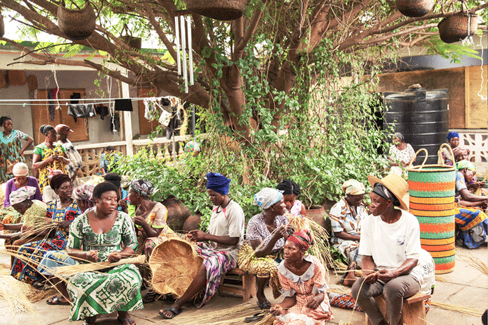「博爾加坦加」的地名源於當地弗拉語(Frafra language),「bolga」代表「岩石」,「tanga (tẽŋa)」則是「城市」之意。「岩石之城」的名字透露著當地荒蕪的地理環境,土地貧瘠不利農耕,人們被迫尋找其他維生方式。最初,象草編織物件用於過篩,是當地人釀造高粱或小米啤酒(pito beer)的過濾用具,後來成為籃子用來承裝物品、水果,象草開始被編成各式各樣物件,拿到市場上交換鹽與 可樂果(Kola nuts),就這樣慢慢形成龐大的編織產業規模。