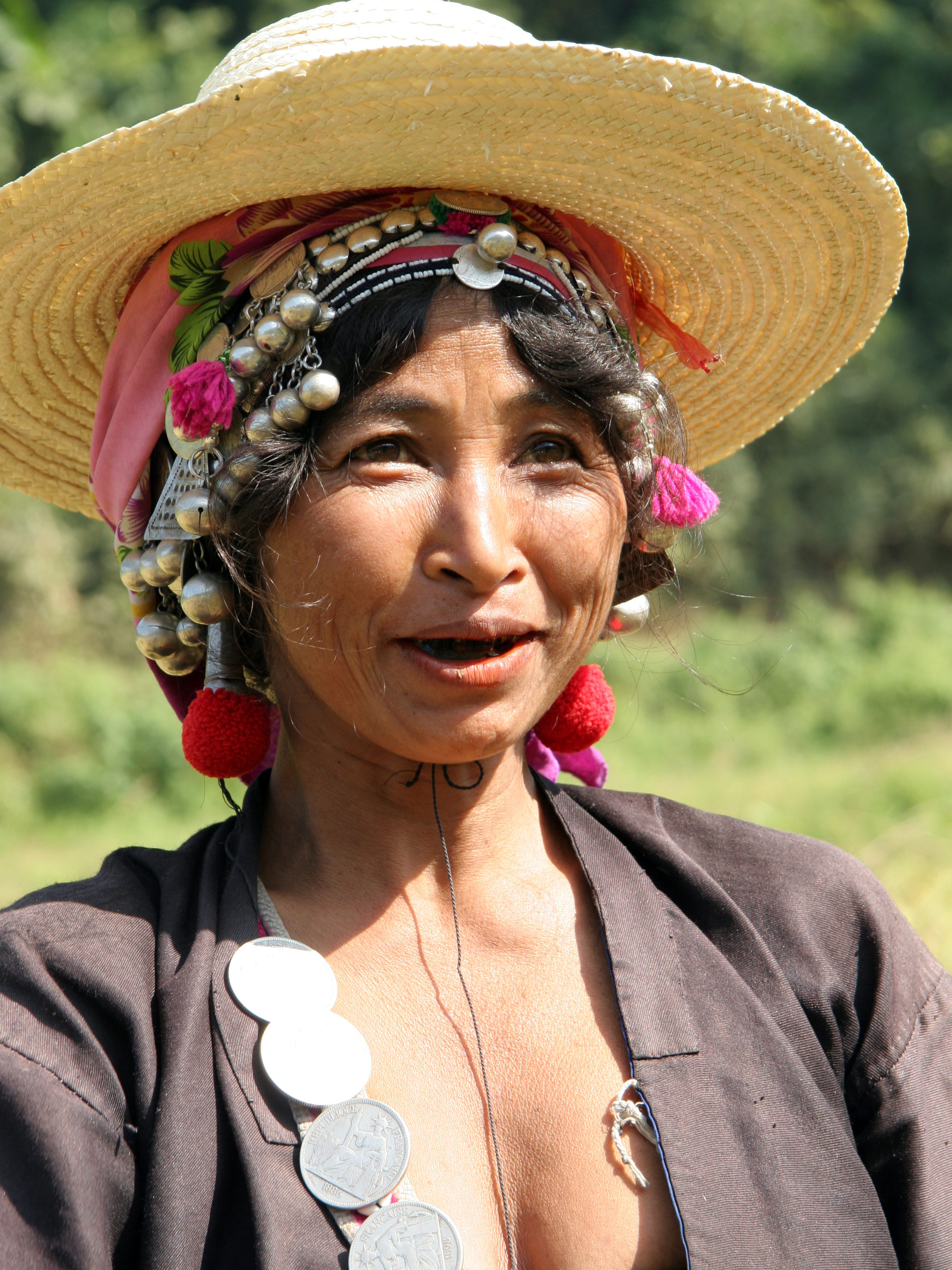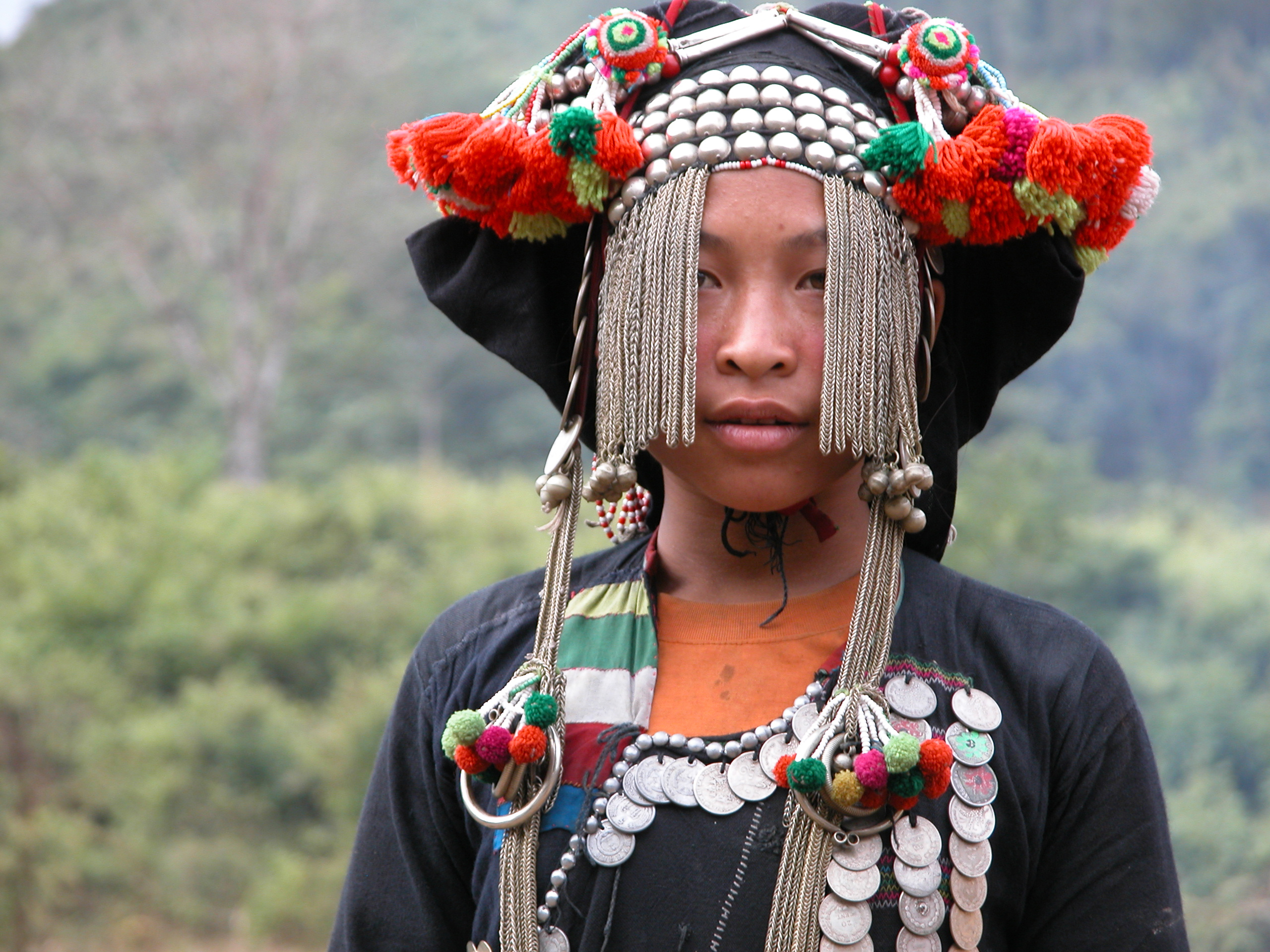圖/同為寮國阿卡族婦女,也有不同的頭飾