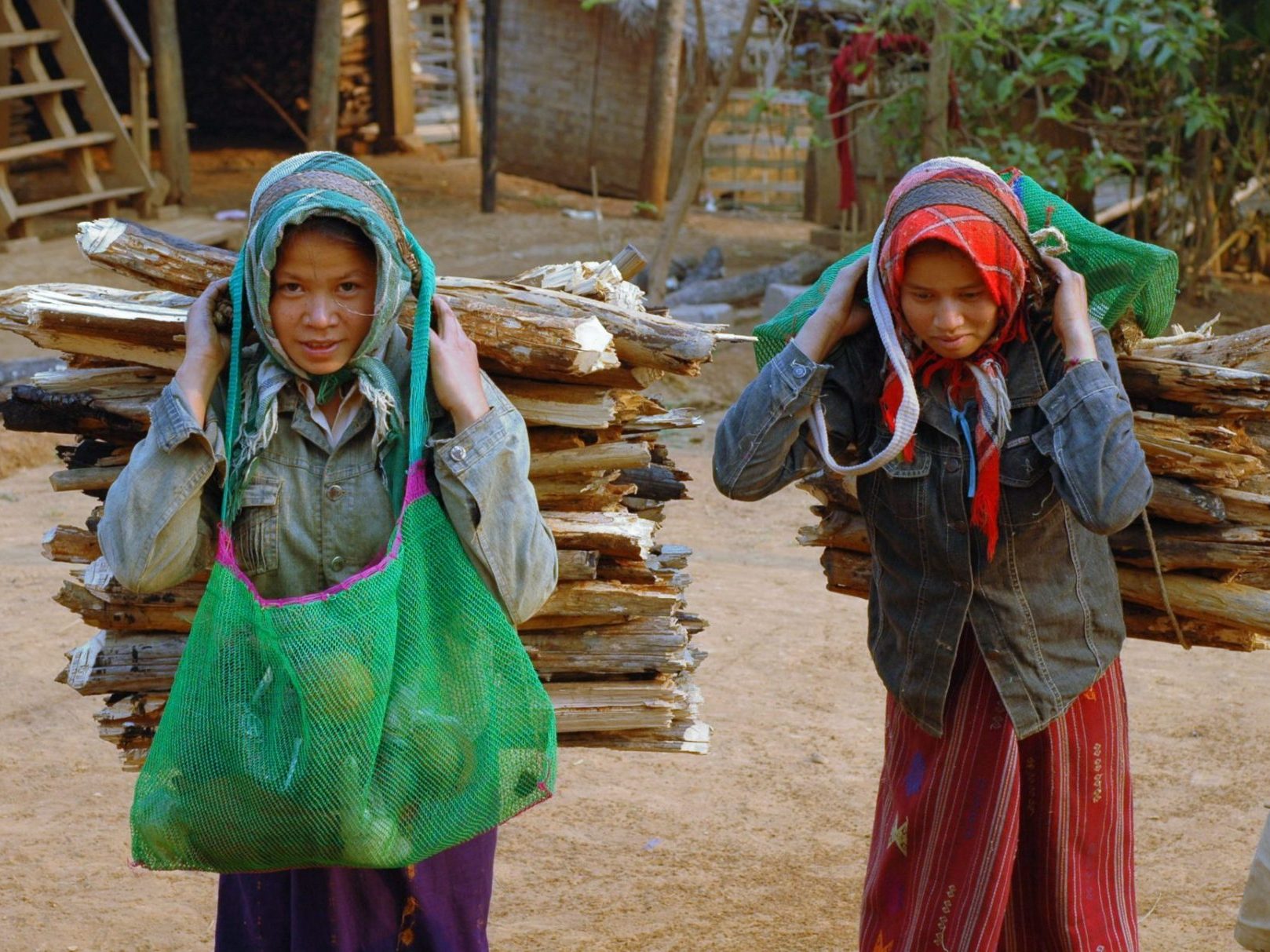 圖 / 克木族利用藤編袋載運木材、蔬菜和藥草