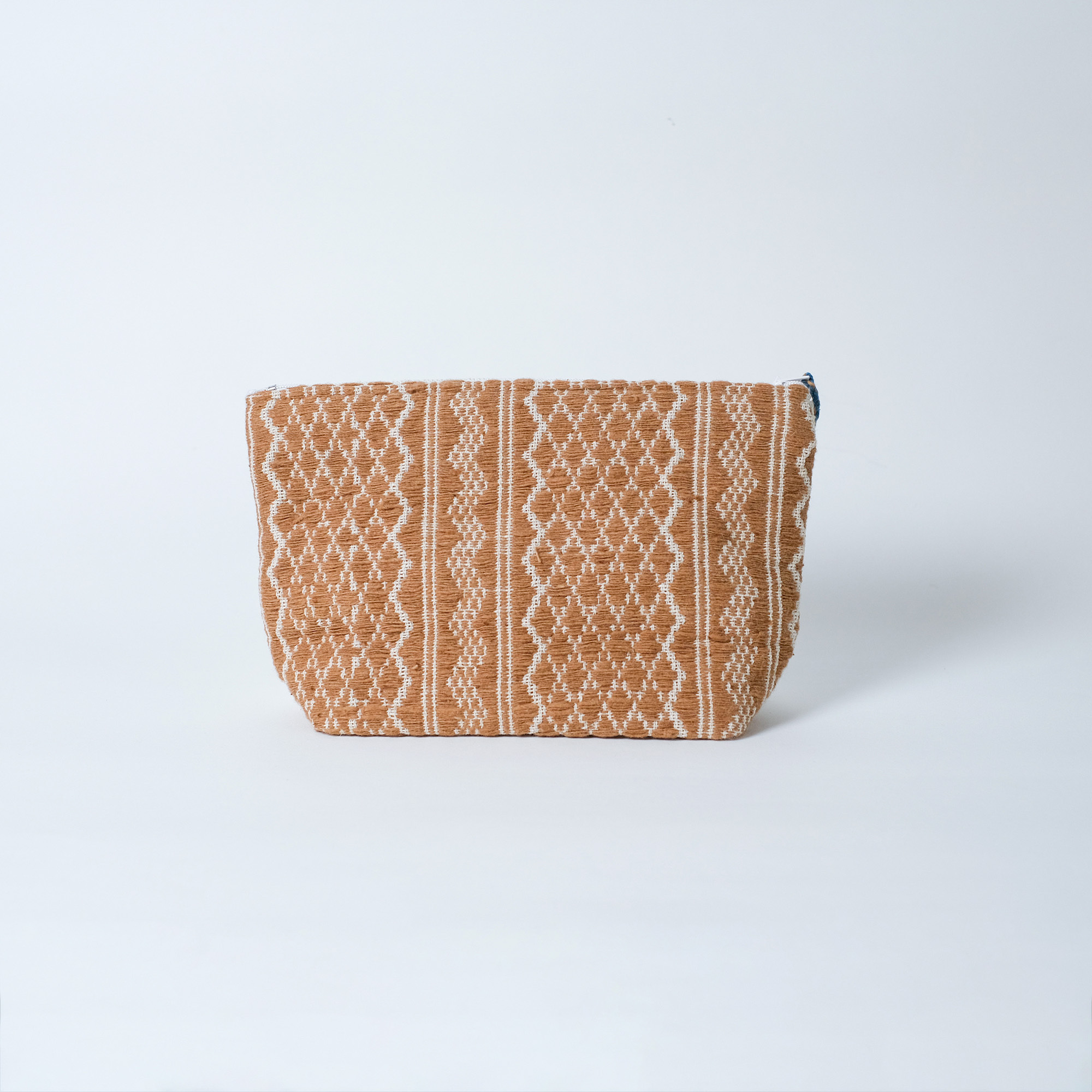 傣仂的棉紡工藝亦相當傑出,家家戶戶都有織布機,也會親自種棉花。編織之前,他們會先以細竹條在織布機上排好預計織出的圖案。這款化妝小包就是由傣仂族織女製作,創作融合傳統布料和圖案的實用新設計。