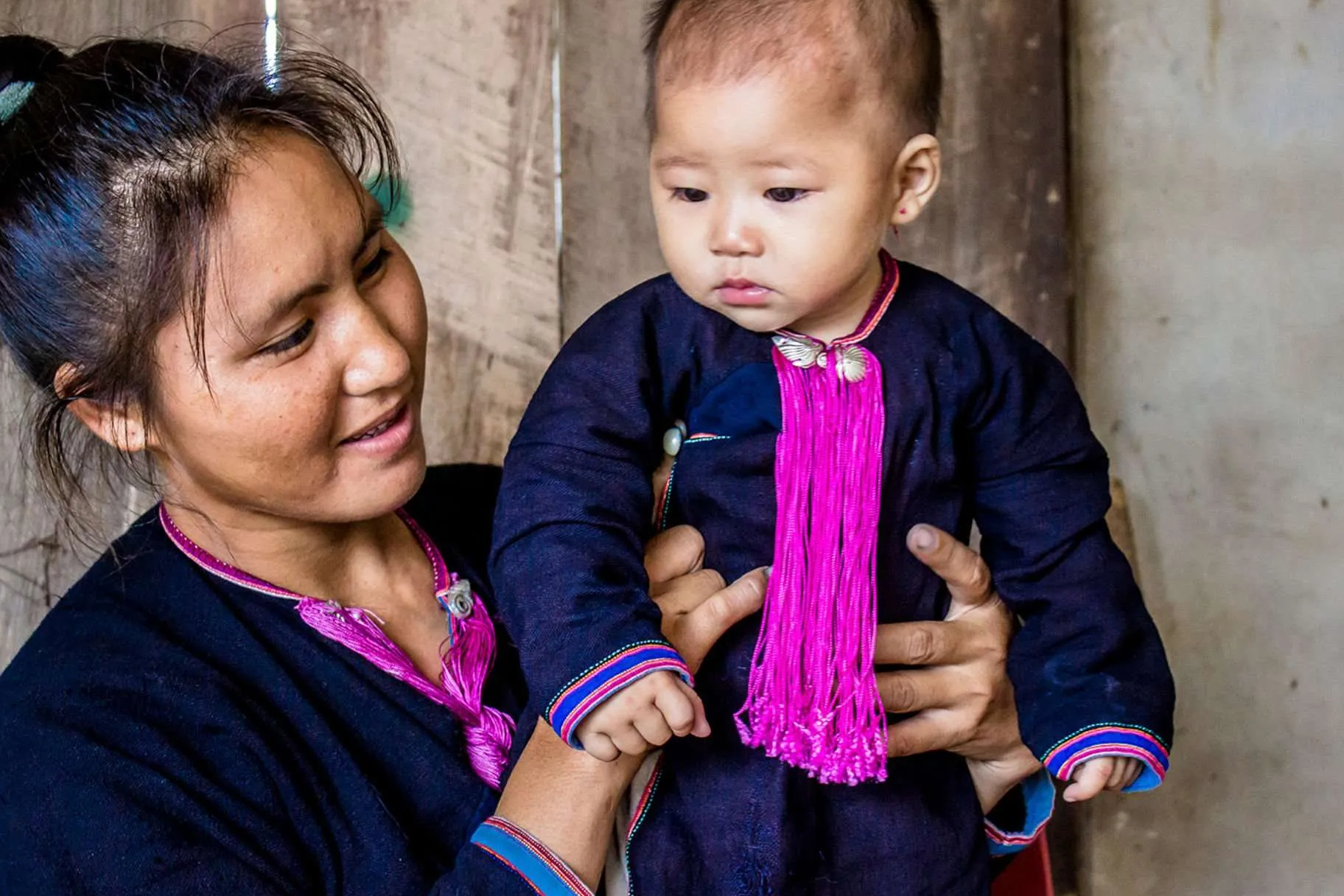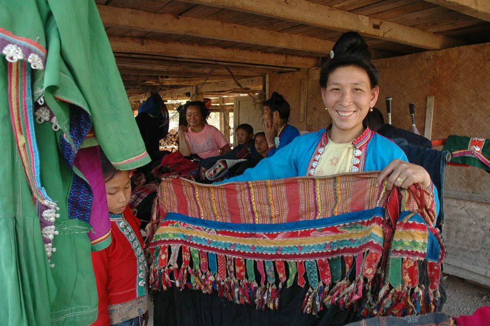 苗族發源於蒙古跟西藏,從19世紀初開始穿過中國抵達寮國,可依服飾特色細分成白苗(Hmong Dao)、藍苗(Hmong Du)與條紋苗(Striped,Hmong Djua)。其中生活在寮國北部的藍苗會種植漢麻(Hemp),其種子可以煉油,樹皮則可製作布料。