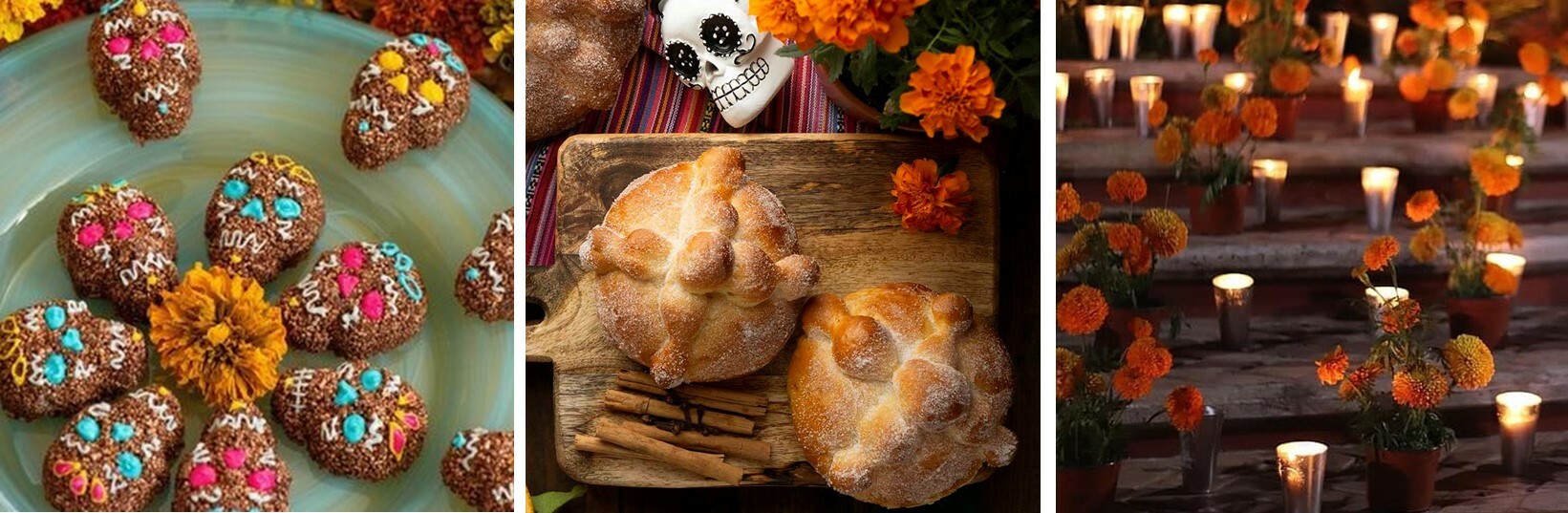 圖 / 其中不可或缺「骷顱糖 Calavera de azucar」、「死者麵包 Pan de muerto」與「菊花 Crisantemo」