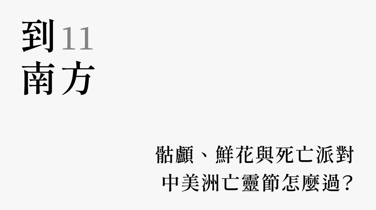 中美洲「亡靈節」即將來臨。別於台灣清明節,色彩斑斕的亡靈節充滿著歡笑與喜悅。今年跟著《到南方》一同深入認識亡靈節,並歡喜迎接中美洲鬼門開之日。