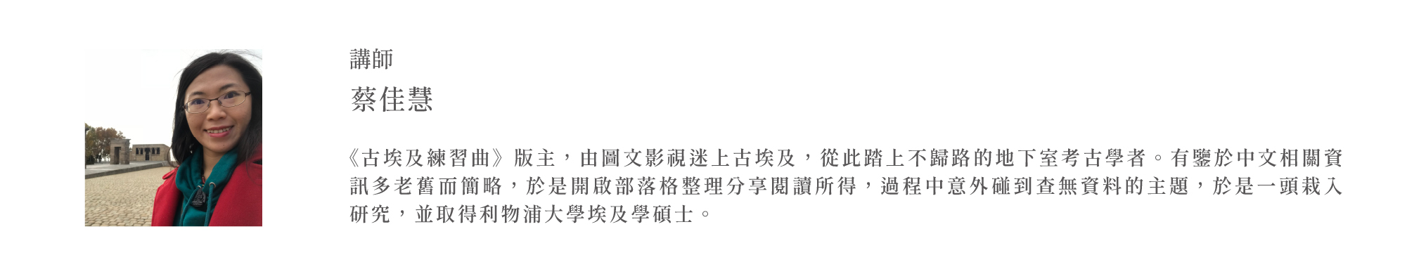 講師:蔡佳慧|《古埃及練習曲》創辦人、英國埃及學碩士