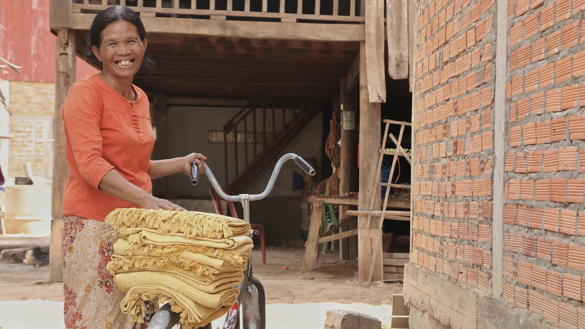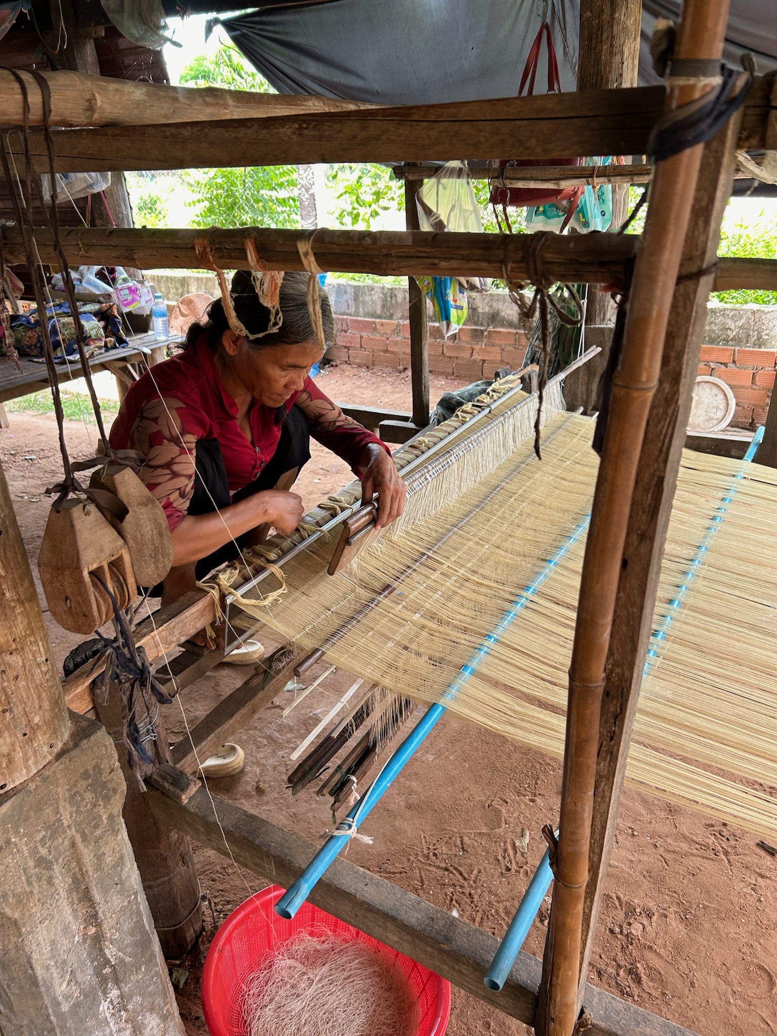 織布,是柬埔寨許多農村家庭根深蒂固的傳統,其中位於柬埔寨西北邊、距離吳哥窟所在的古都暹粒約兩小時車程的普農斯羅(Phnom Srok),是偏遠農村也是柬埔寨的織布重鎮。村子裡幾乎每戶人家都有一台自架的手織車(handloom),織布是每家每戶母親傳給女兒的傳統。
