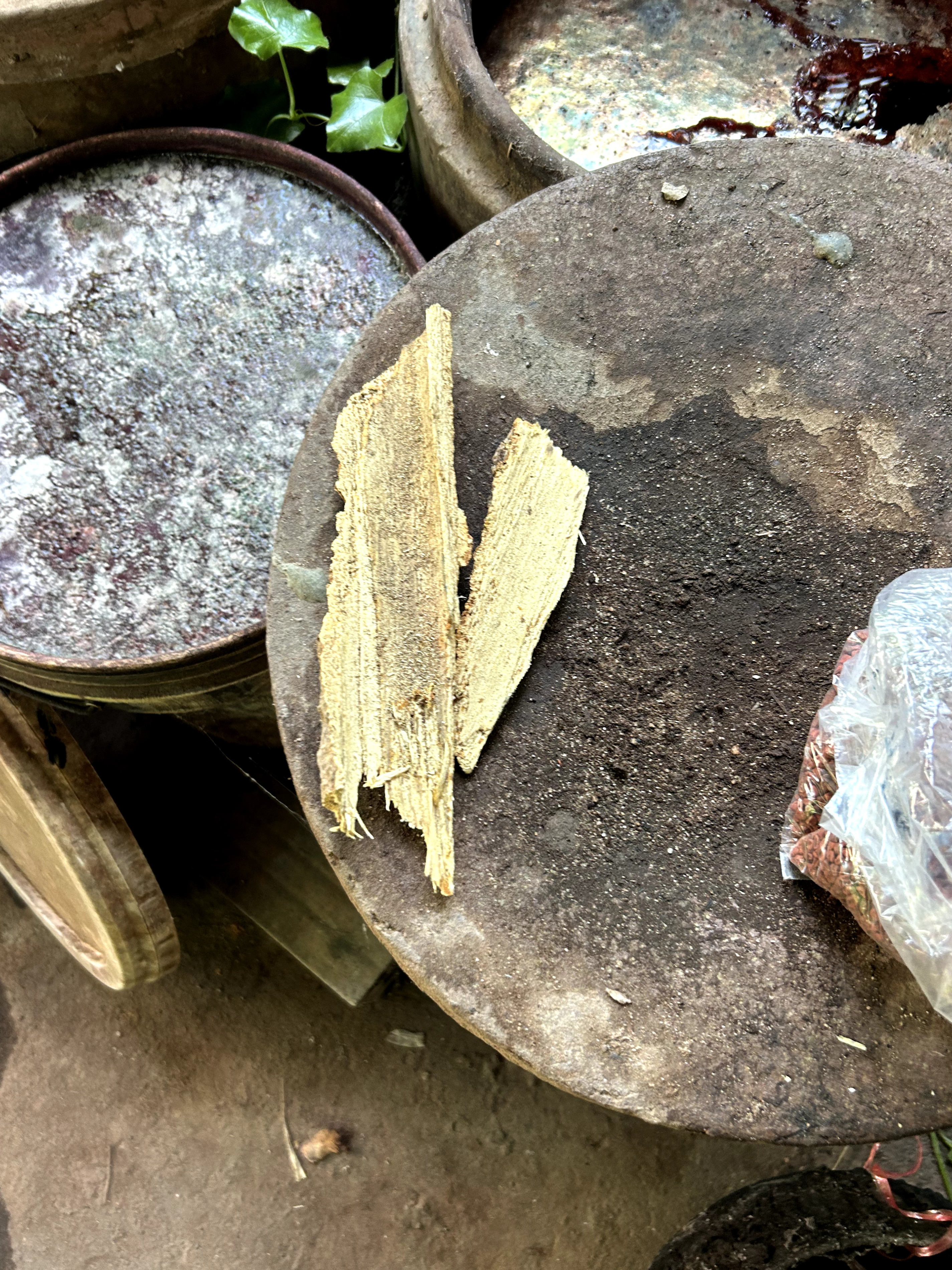 圖/製作黃色跟綠色染料的prohut(藤黃科的樹皮)