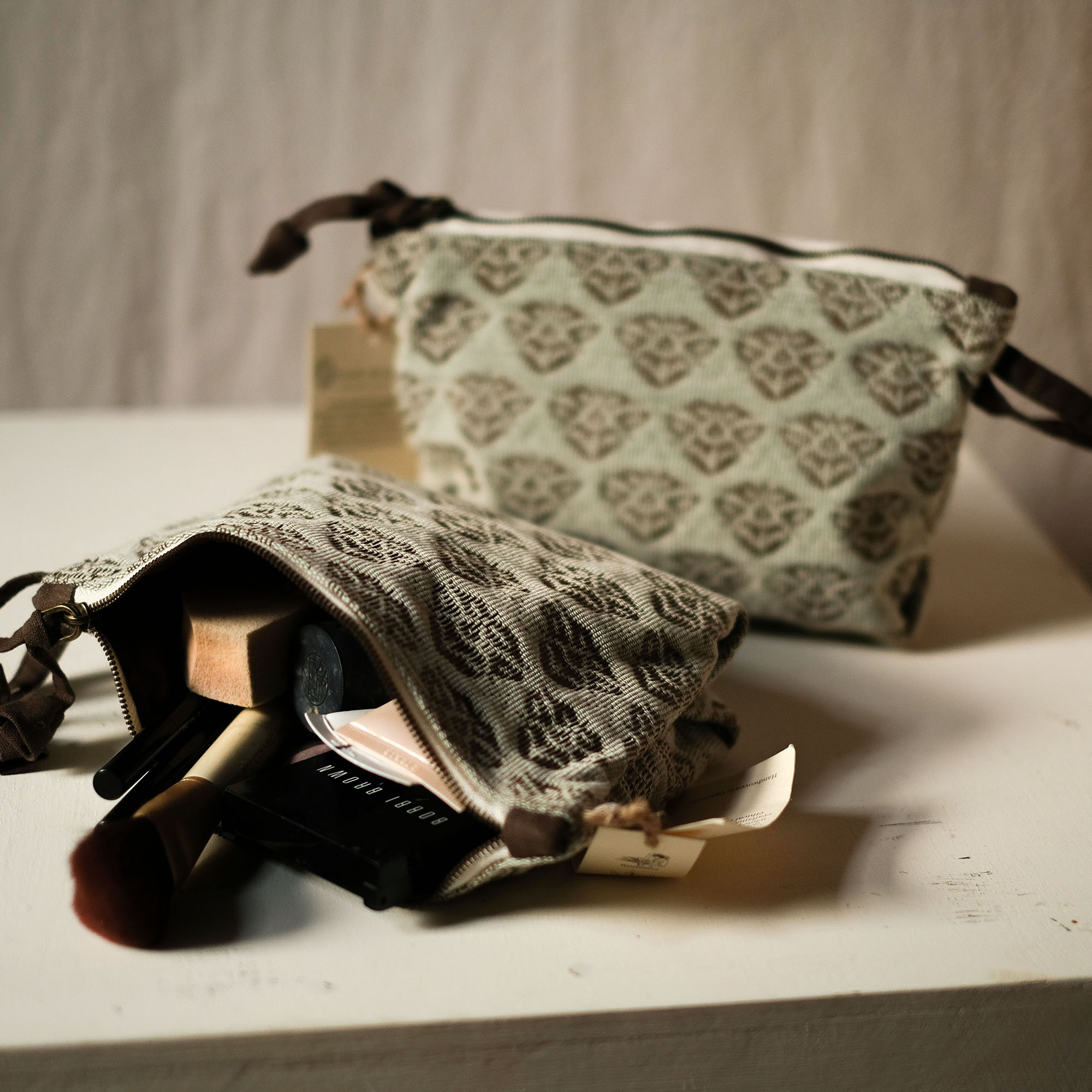 小巧玲瓏的棉織化妝包,束口內袋的設計可收納各種小物,適合作為化妝包或旅行收納袋。
