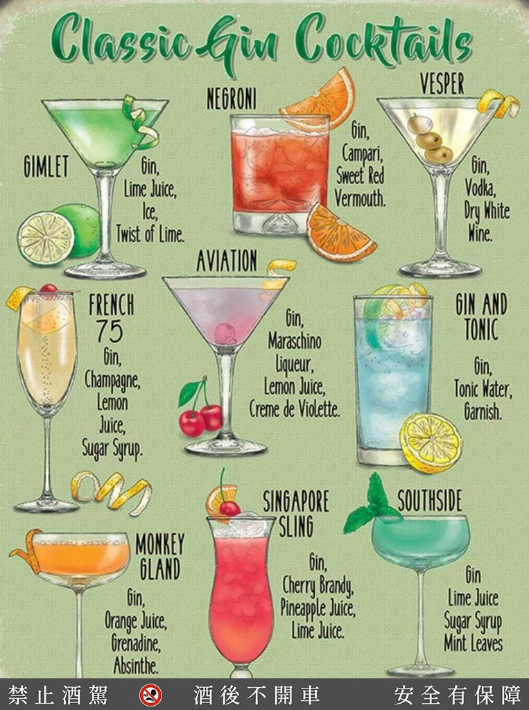 琴酒(Gin)一詞源自杜松子酒(Genever),由英國人簡化稱之。相較其他酒類,琴酒沒有太嚴格的限制,它的定義很簡單,就是「浸泡過杜松子的37.5度以上之烈酒」。多數的琴酒以穀物為原料,像是大麥或裸麥,並經過發酵與蒸餾製成,其酒精濃度依各國法規有所不同。