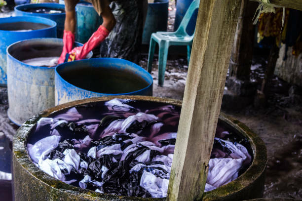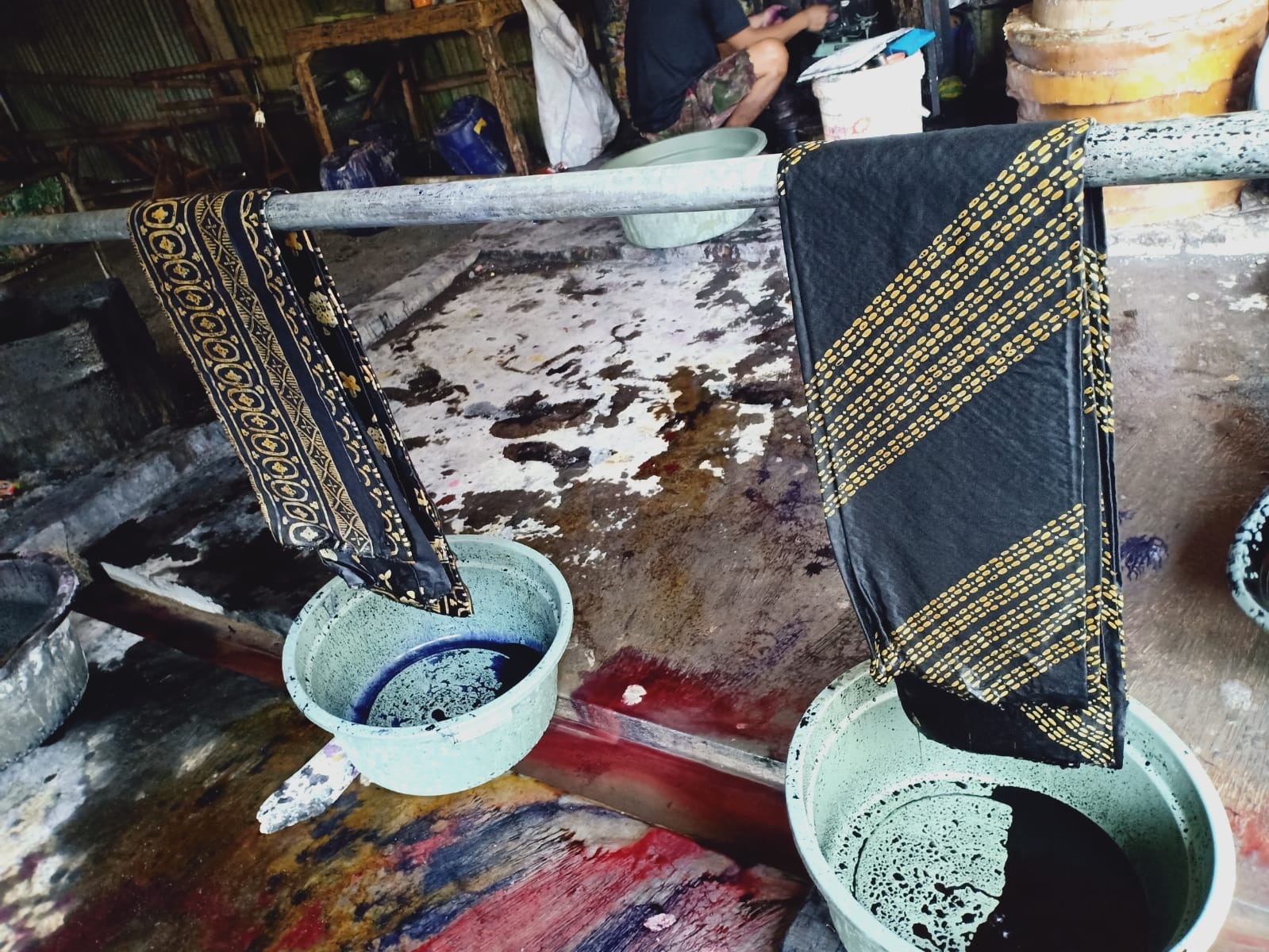 用熱蠟畫成圖案後,便會將布料浸入染料進行染色。蠟染使用天然染料,常見的染料物質有Jelawe 毗黎勒果皮(綠色)、Merr 呂宋毛蕊木、Jambal 盾柱木、Tingi 角果木、Secang 蘇木等。