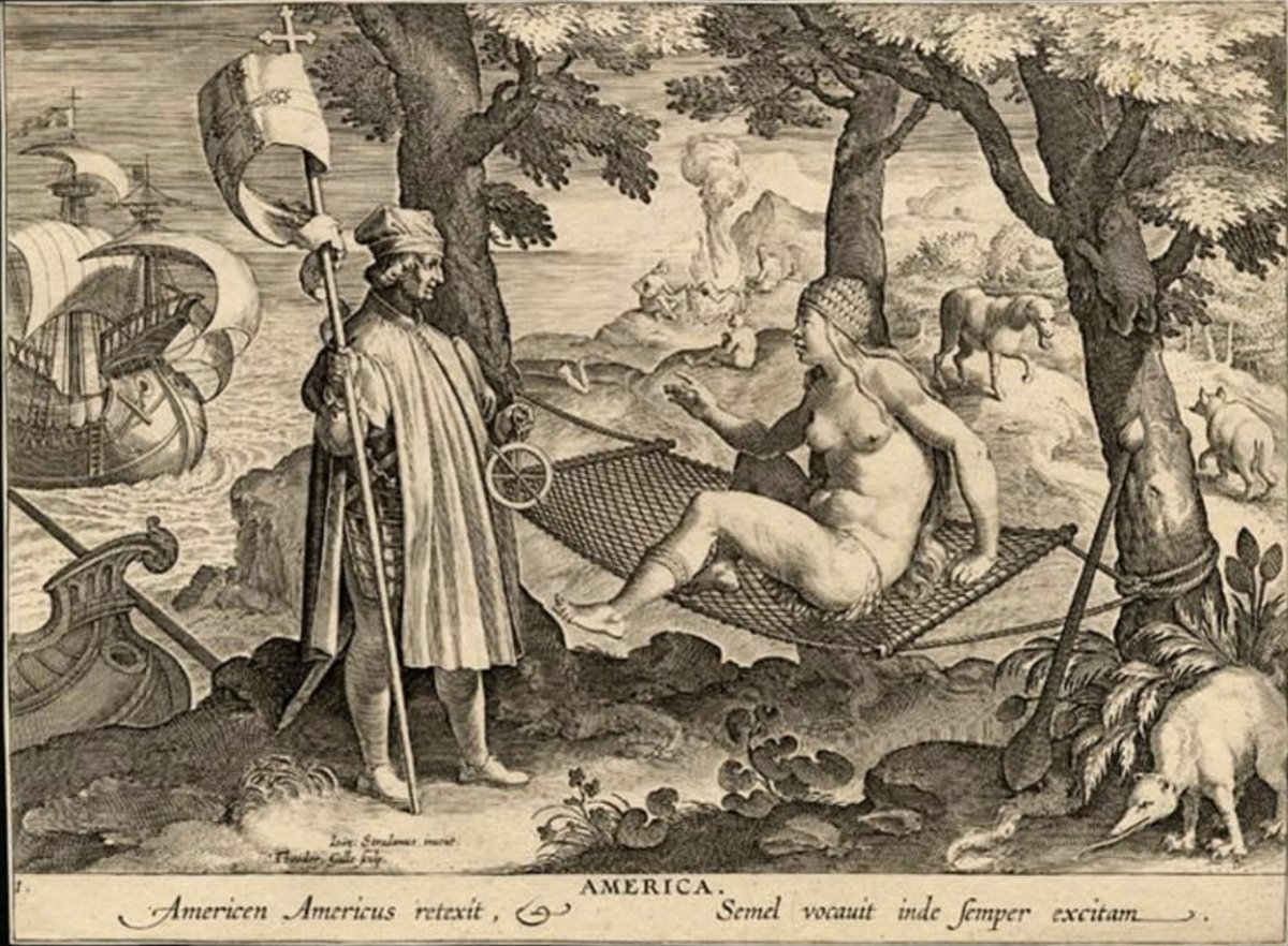 圖 / 哥倫布初見到巴哈馬群島當地原住民時,他們正在吊床上