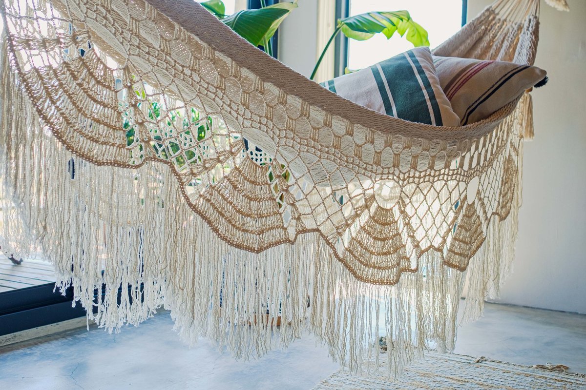 每張吊床,不管哪種樣式,都是拉美的工藝師們透過巧手,親手編織起來的藝品,也是每個家族代代相傳的記憶。但有鑑於現代公寓少有空間能夠放置一張完整的吊床,因此設計上也有了新的形式——「吊椅」。吊椅兼顧吊床的舒適及空間的考量,使都市人不論在陽台、客廳,或是自己的房間中,都能感受到南風吹來微微搖晃的愉悅感。