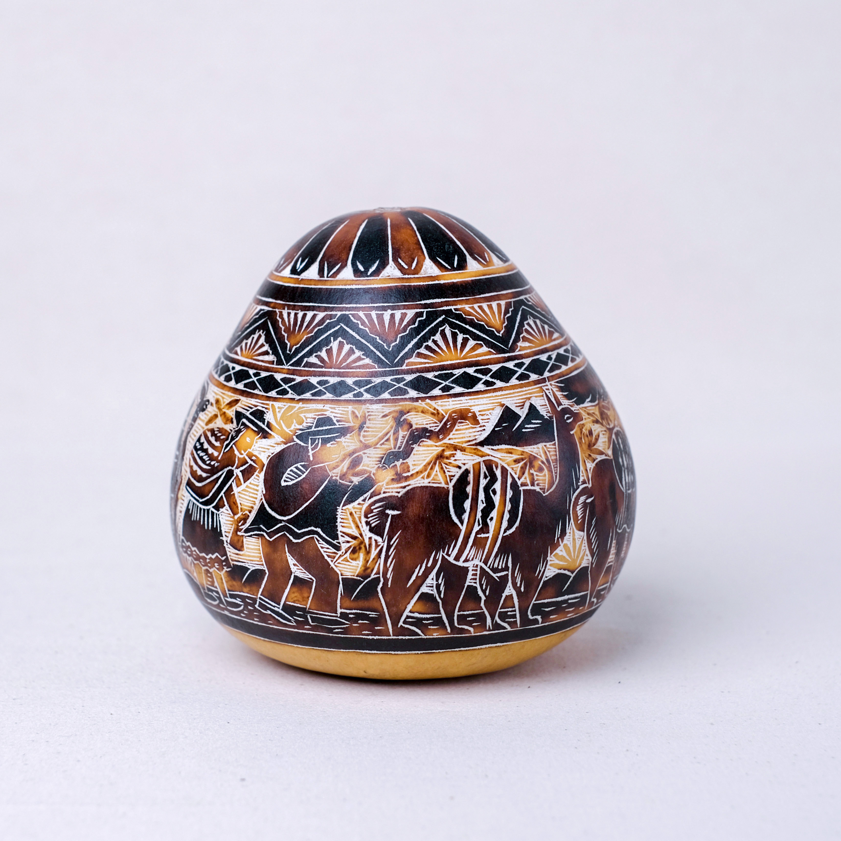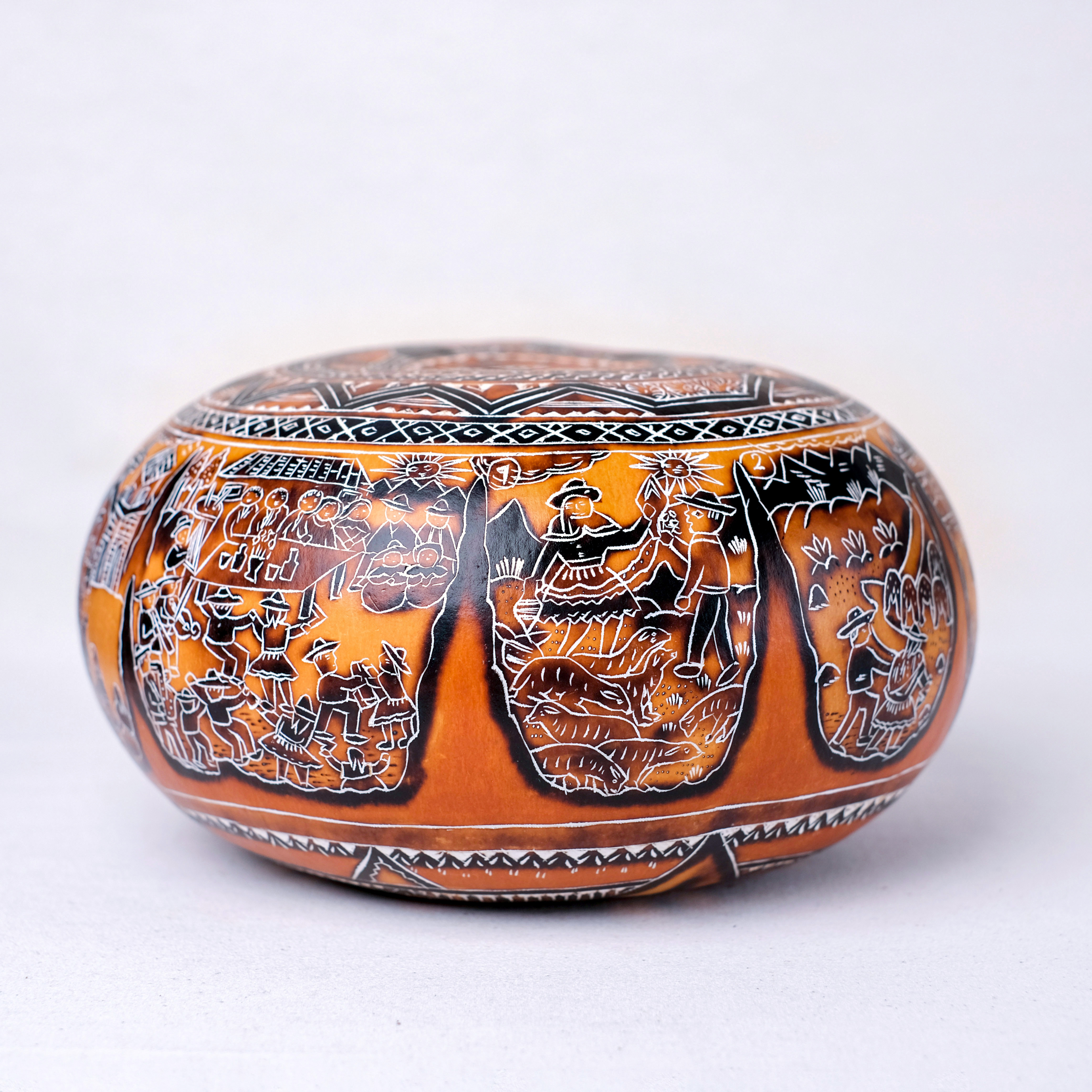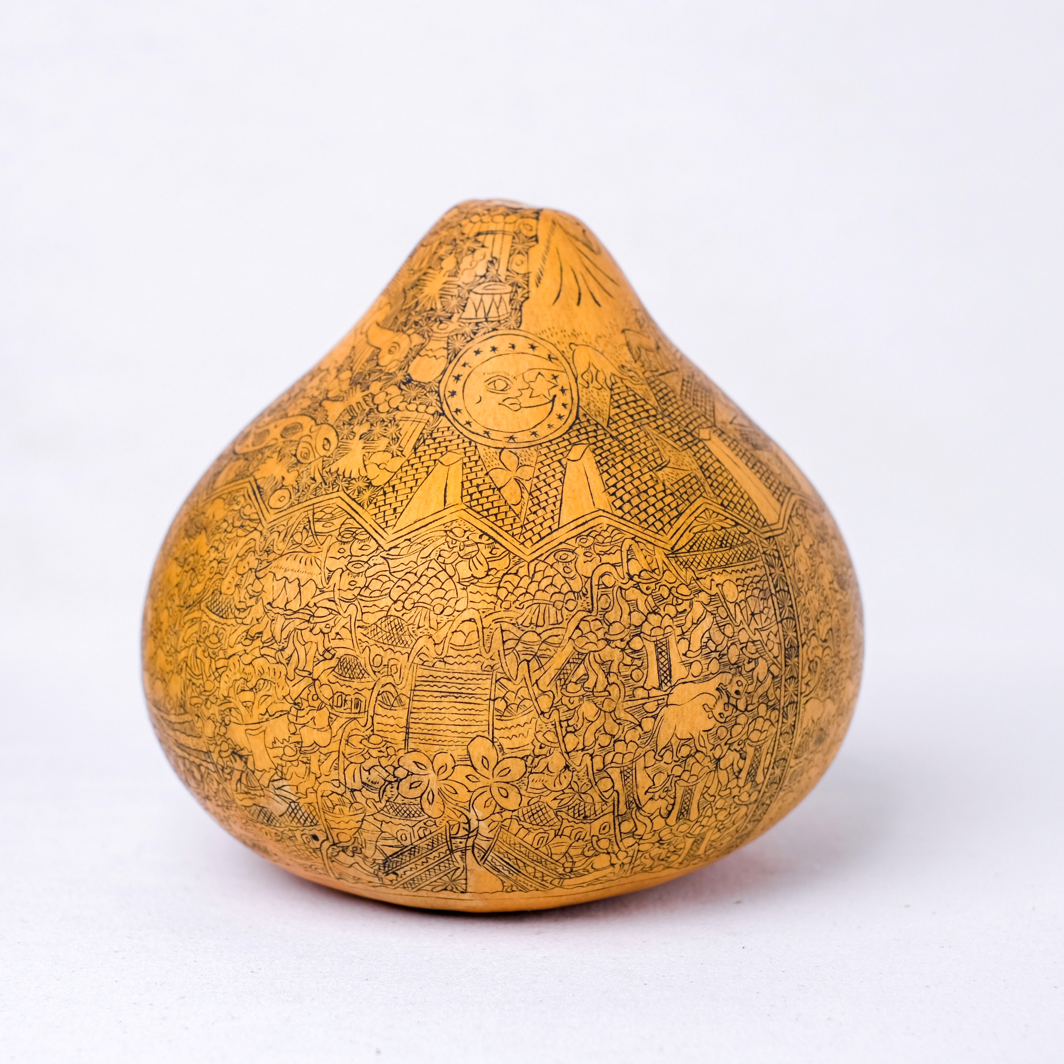 葫蘆雕刻的創作題材五花八門,包含日常生活場景、宗教或安地斯儀式及神話、農作物、典型的舞蹈或動物等等,有些圖案甚至細緻到需要用放大鏡才能欣賞。