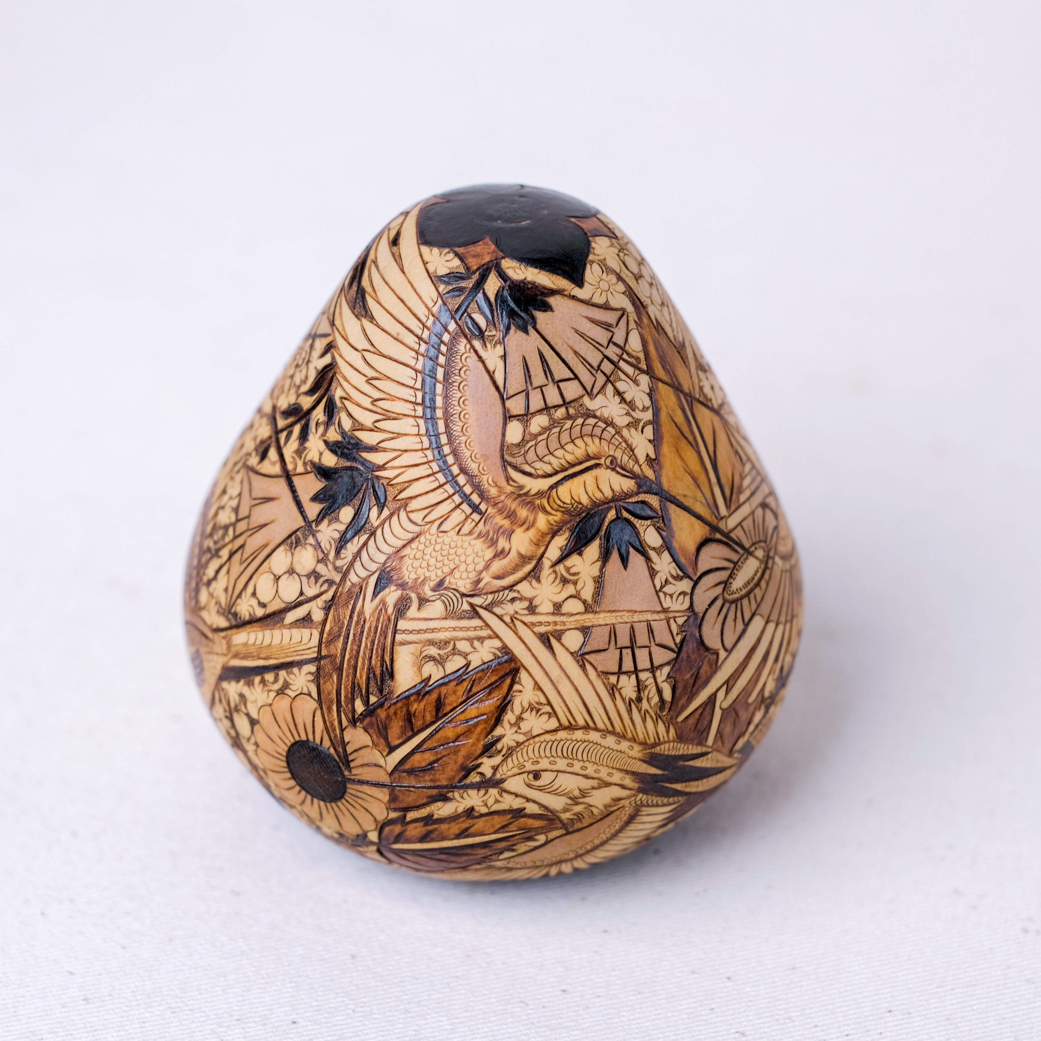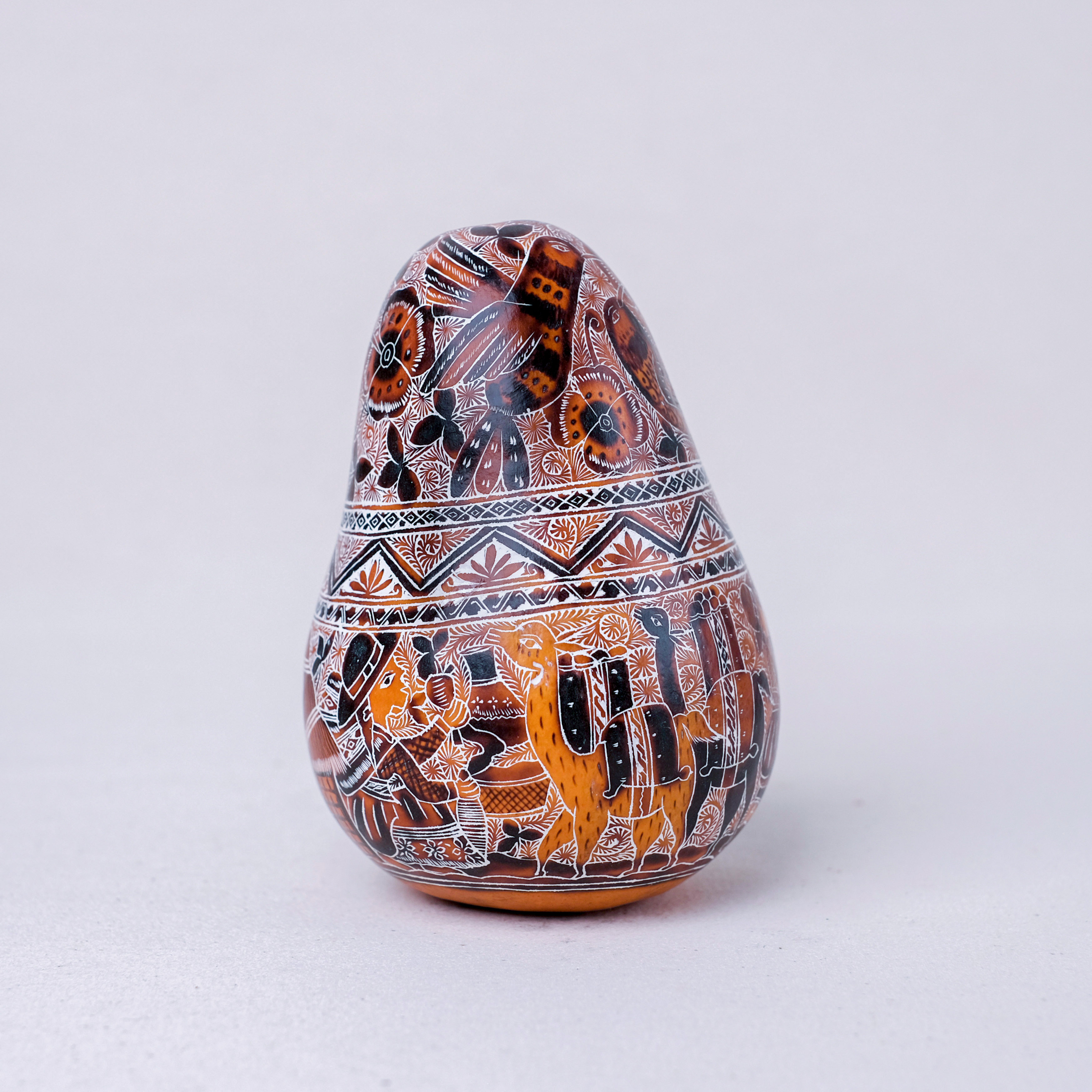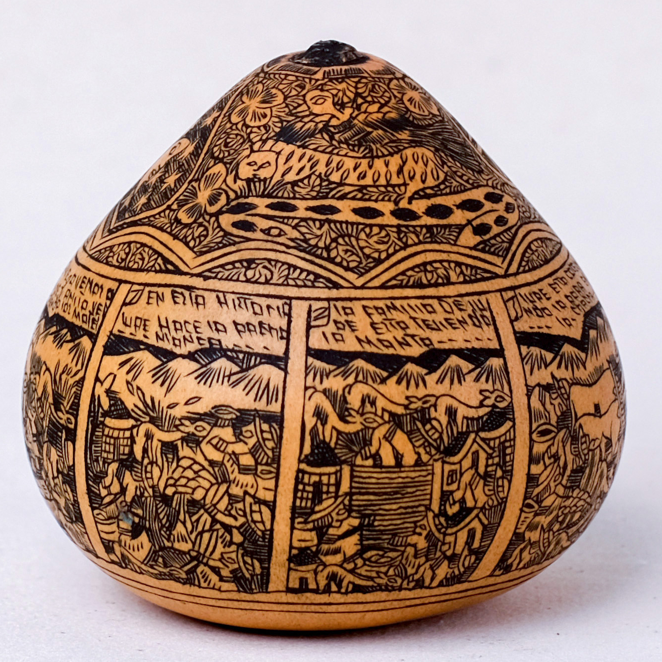 葫蘆雕刻的創作題材五花八門,包含日常生活場景、宗教或安地斯儀式及神話、農作物、典型的舞蹈或動物等等,有些圖案甚至細緻到需要用放大鏡才能欣賞。