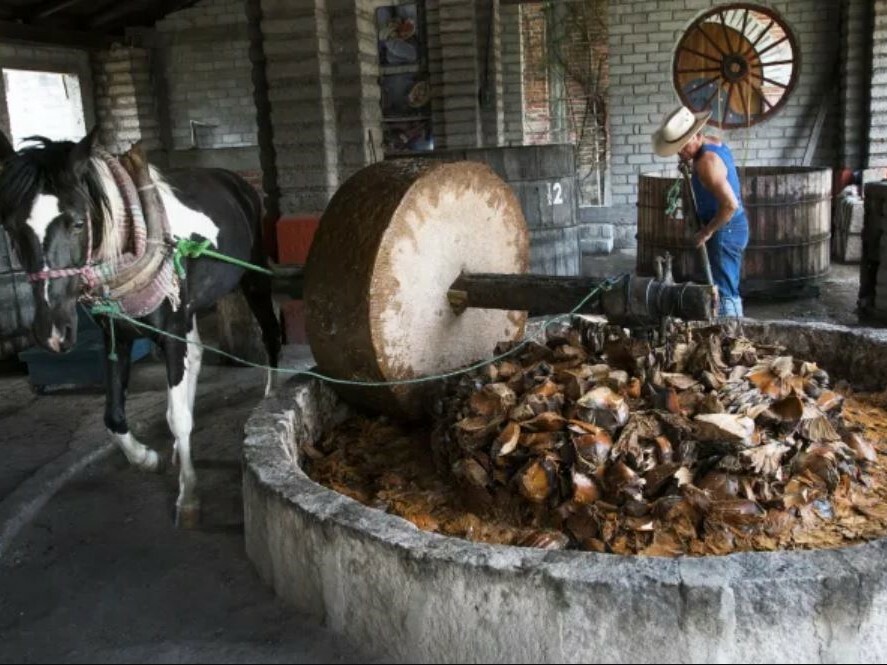 梅茲卡爾酒又稱為「煙燻龍舌蘭」,會先把龍舌蘭的葉片切下,取龍舌蘭芯發酵,並在大土窯中煙燻烘烤超過三天。烘烤過後用石輪磨壓輾碎,讓其自然發酵後,再用銅鍋二次蒸餾。梅茲卡爾酒是墨西哥最古老的蒸餾酒,五百年來延續著古法,有著濃厚的煙燻香氣,是傳統「真男人」的飲品。