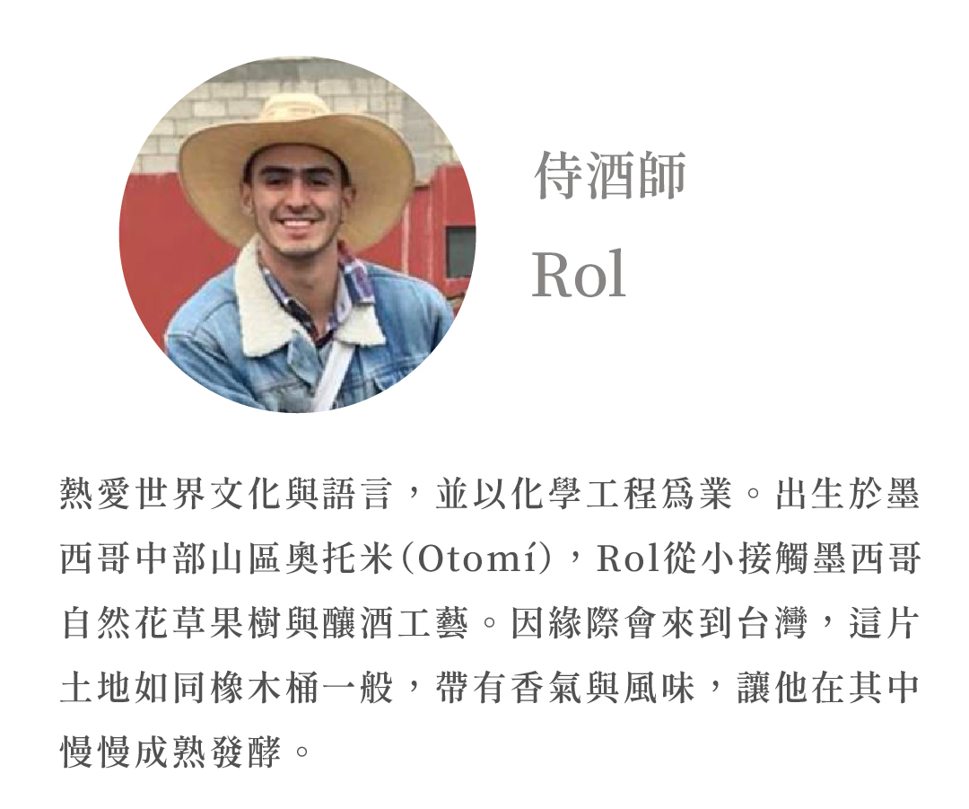 三個月的木桶熟陳帶,淺金黃色的龍舌蘭酒有著圓潤勻稱的口感,香草與木質調的香氣,帶辛香氣。