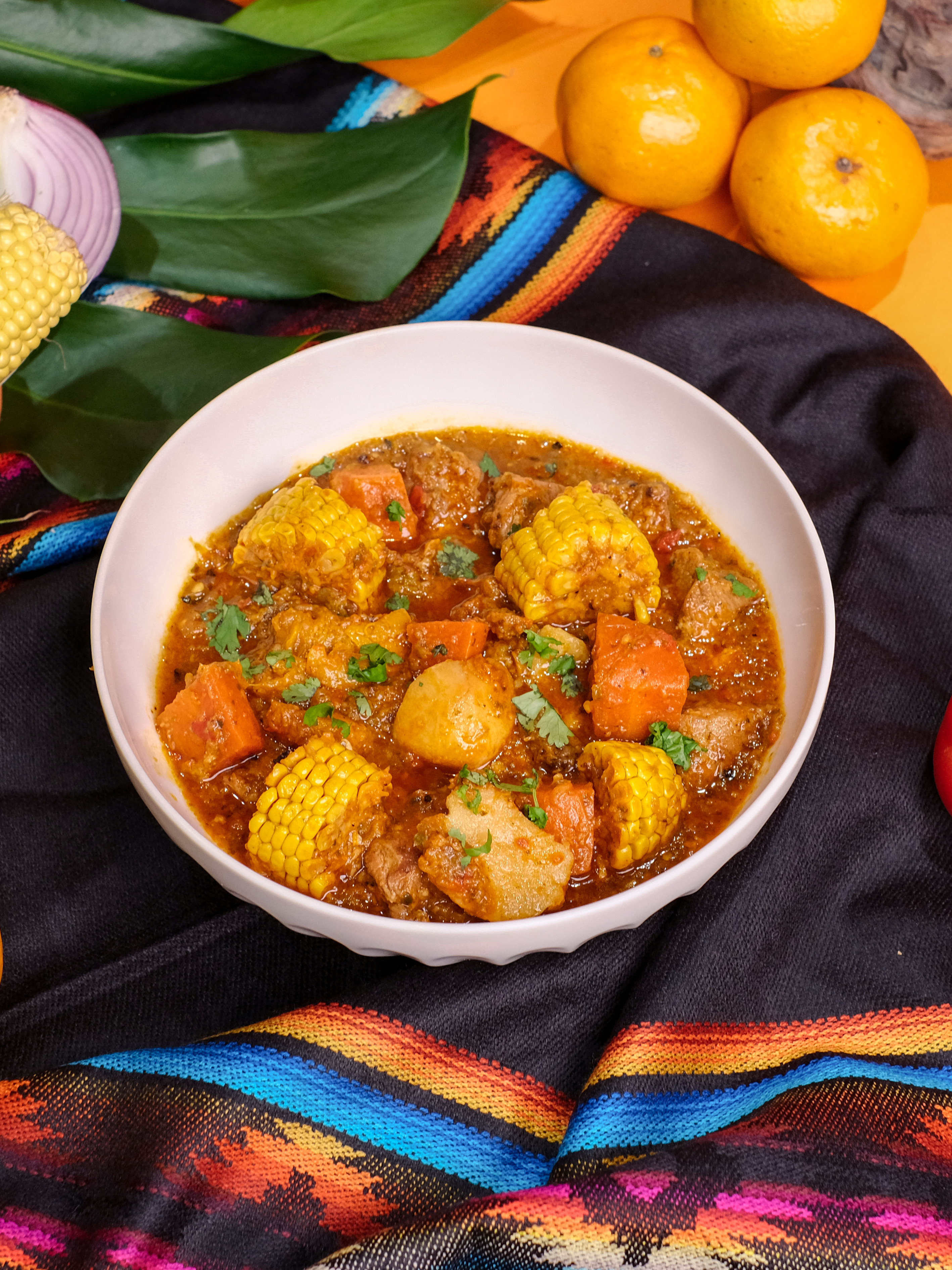這次主廚引進加勒比海的 Sancocho,將豬肉與洋蔥、甜椒、木薯、紅蘿蔔、玉米一起小火慢煨數個小時,讓所有食材的精華在湯裡釋放,最後撒上香菜。擠上檸檬汁、切些新鮮酪梨一起吃更加開胃。