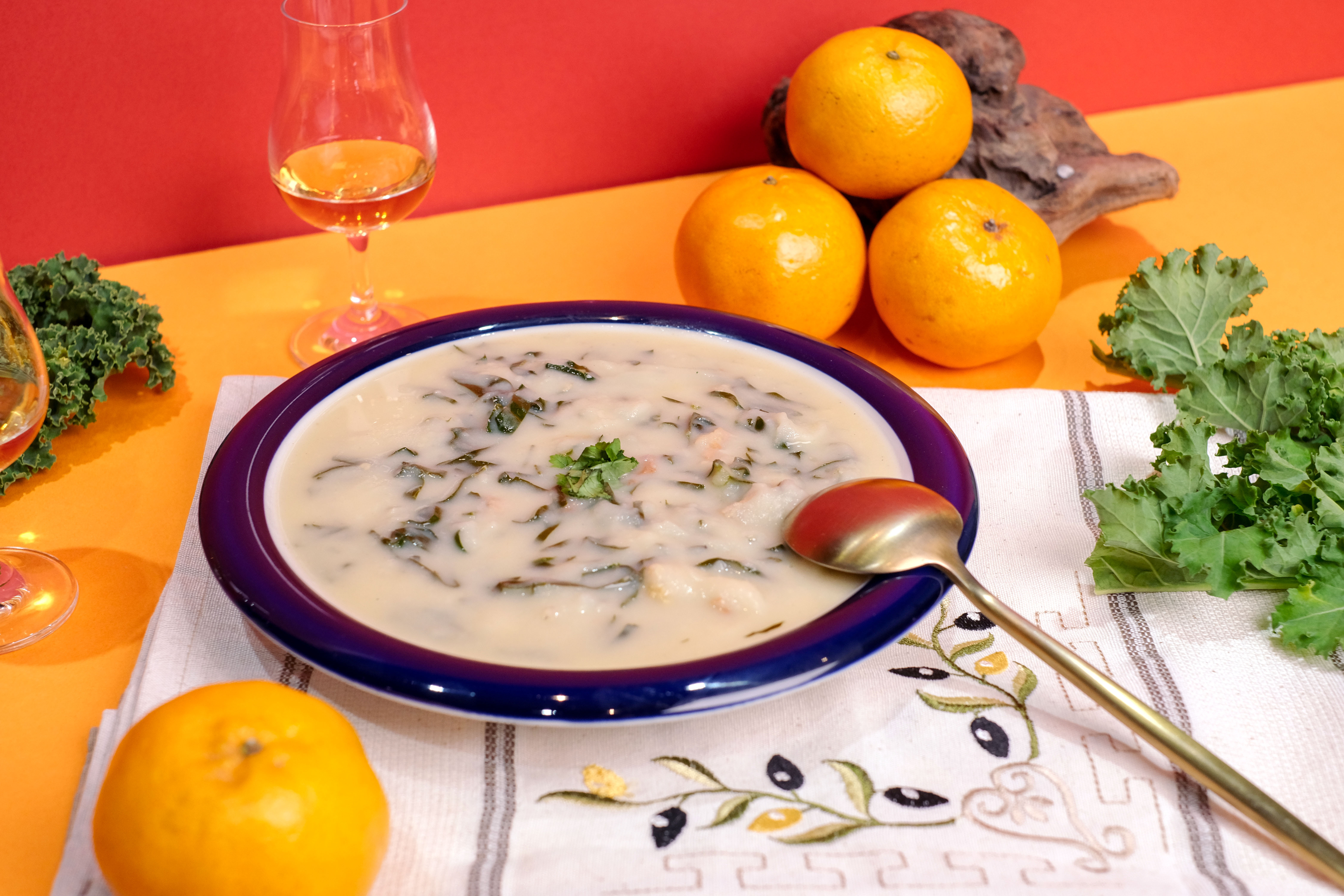 綠湯也傳遍全球葡語國家,在澳門又稱薯蓉青菜湯,在曾被葡萄牙殖民的巴西也很常見,但到了當地改以木薯燉煮而成。這道料理將馬鈴薯充分燉煮,每一口湯都有滿滿綿密的馬鈴薯泥,同時擁有羽衣甘藍葉的清爽,是滿足味蕾的療癒系食物,單喝湯或搭配麵包都很適合。