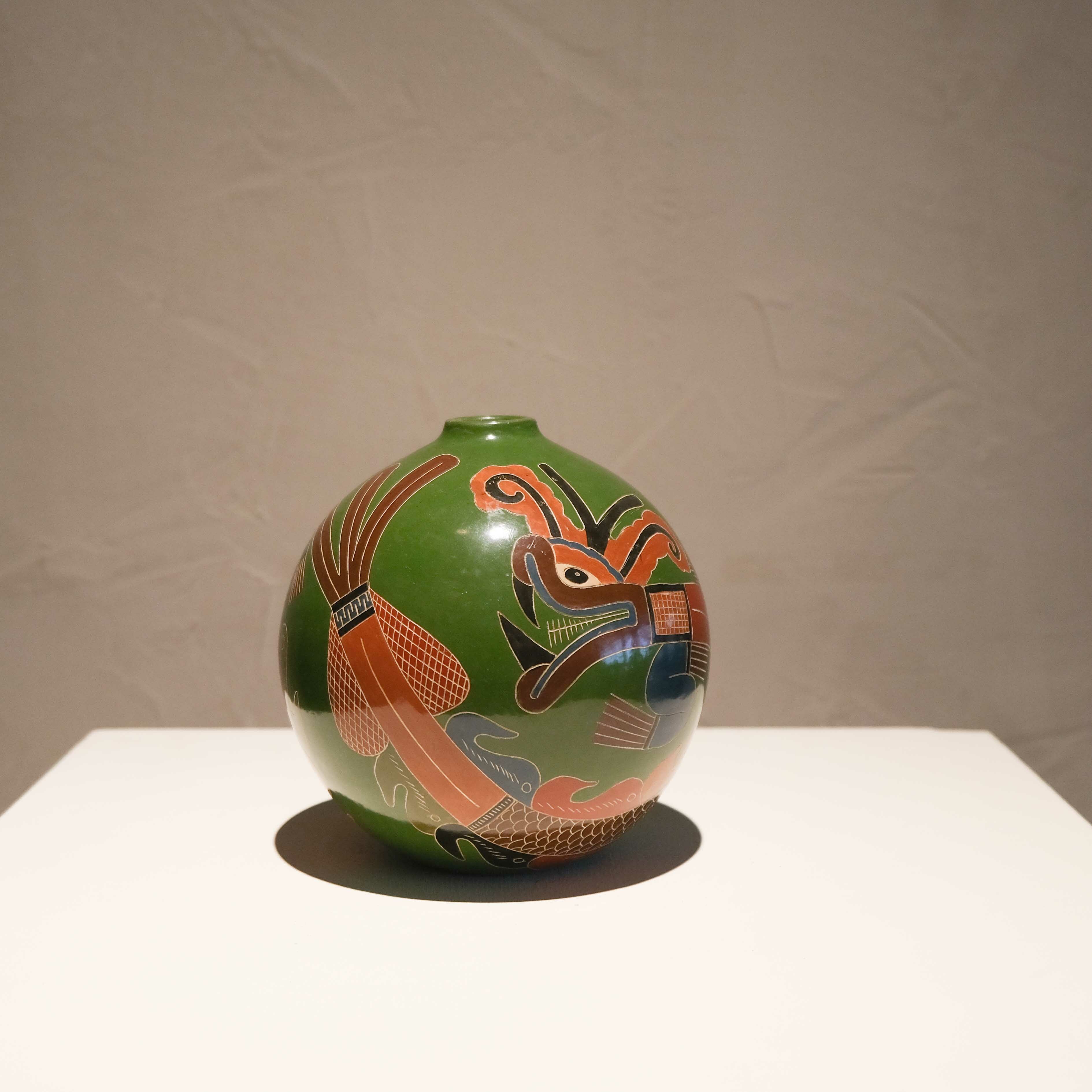 從尼加拉瓜的陶器物裝飾中,可以看見來自奧爾梅克文化而後受阿茲提克人所敬拜的「羽蛇神」,也可以看見馬雅世界中最重要的神祇「玉米神」,以及一草一木等自然萬物,一窺中美洲古老文明與日常生活。