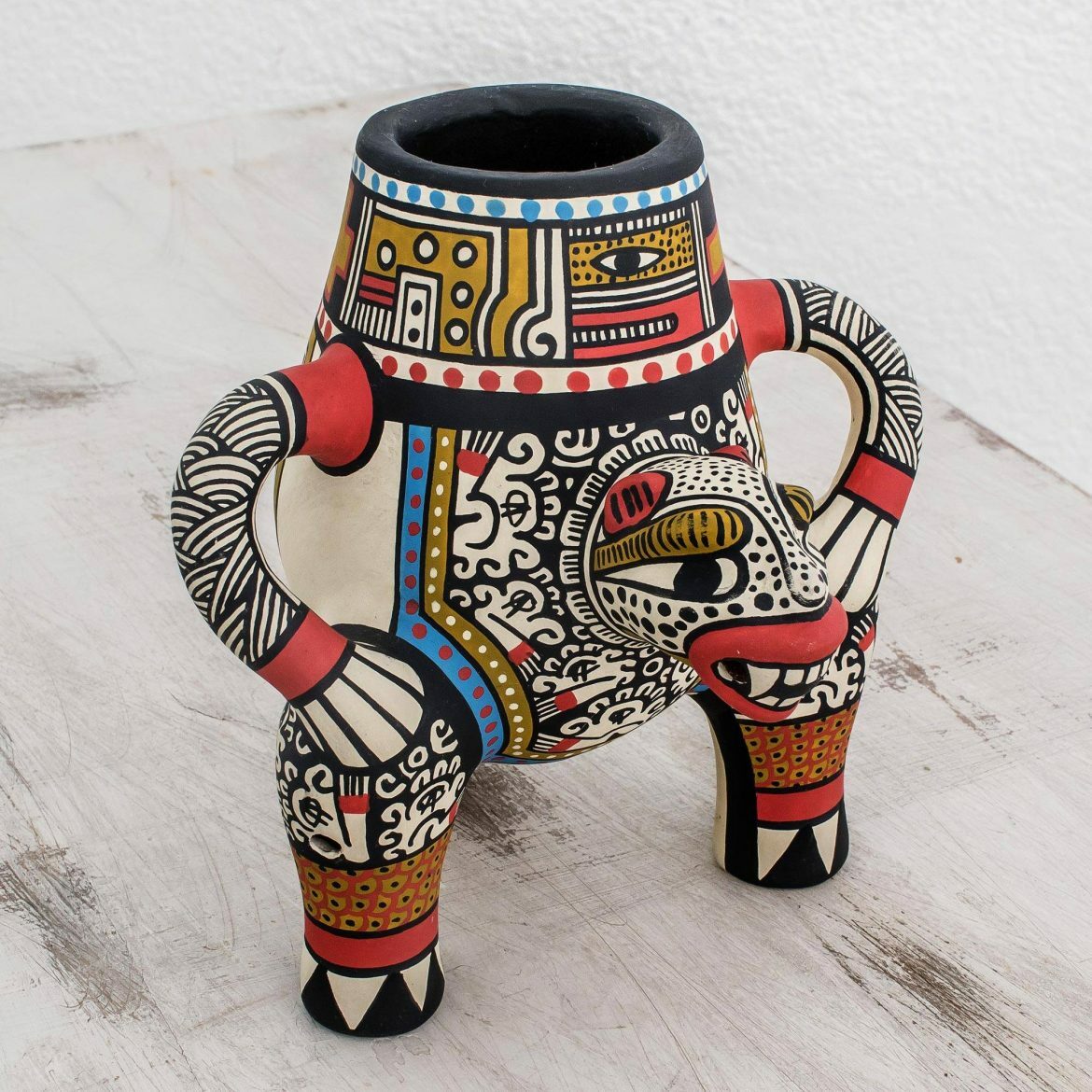 圖 / 美洲豹陶雕與陶罐,美洲豹在中美洲文明中備受崇敬