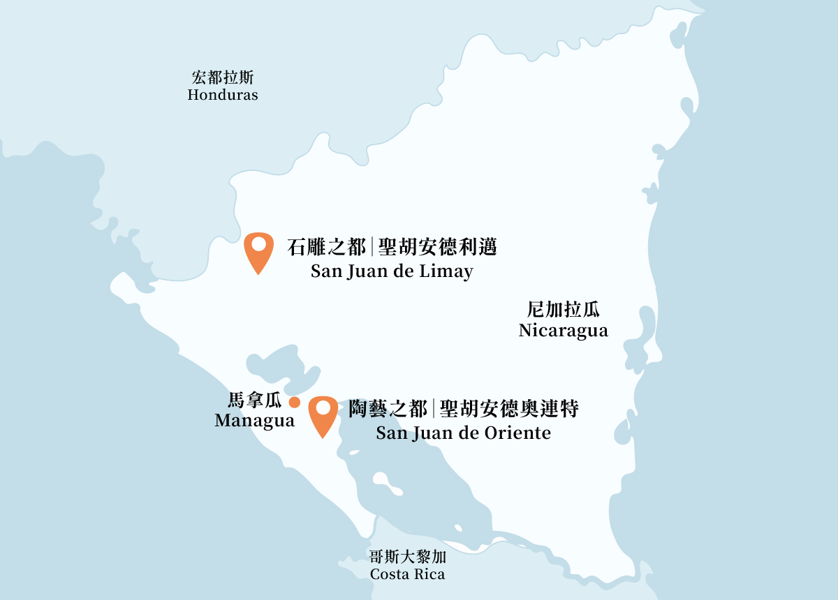 位於尼加拉瓜北方的聖胡安德利邁(San Juan de Limay),距離首都馬那瓜 195 公里,是一個夾在兩山之間難以抵達的山谷城鎮,擁有豐富礦產,自古盛產金、銀、銅及大理石,也是石雕工藝之都。將天然礦石打磨、雕塑成爬蟲類、魚類等動物,自帶天然紋理與自然色澤。
