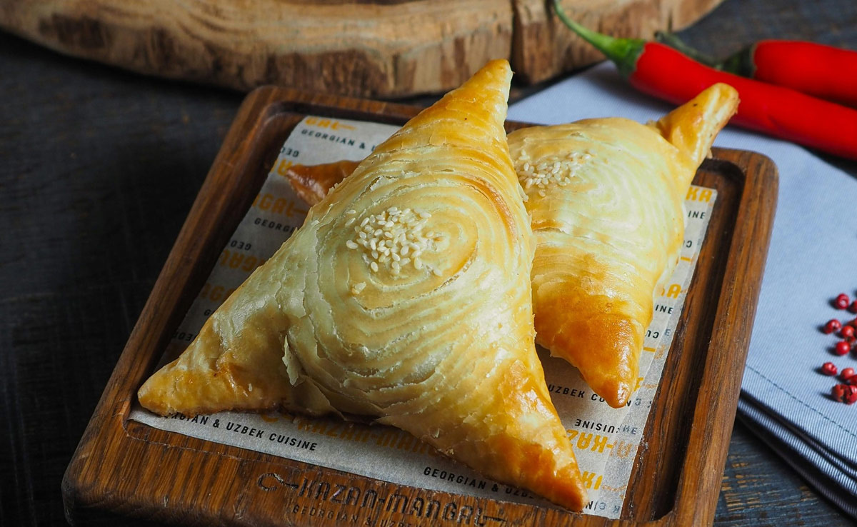 Samsa是中亞一種包著香料肉餡的餡餅,把肉末、洋蔥、乳酪等佐料包進麵皮或酥餅中,用炭火烘烤到金黃酥脆,是烏茲別克、吉爾吉斯、塔吉克等國的街頭小吃。