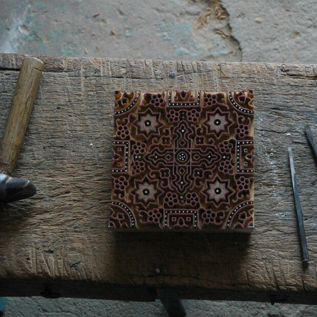 巴基斯坦的木蓋印花章是用信德地區的阿拉伯金合歡(Vachellia nilotica)雕刻而成。這些木塊是成對雕刻的,因此另一側為倒置的圖像。一位專業工藝師一天可以蓋完10到12條布,但由於每一種顏色都需要單獨的印花章,一塊布可能有四到五種顏色,就需要蓋四到五次。