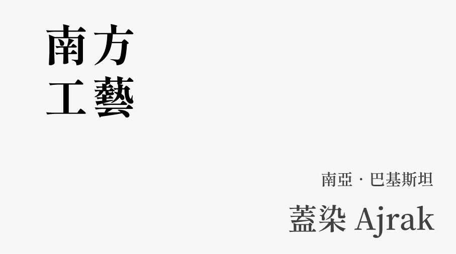 發源於印度河流域的印度古文明(公元前3300年-前1300年),造就今日印度與巴基斯坦兩國的深厚文化。南亞獨特的「手工蓋染 Ajrak」傳統服飾,即為古印度時代傳承至今的古老織品印花工藝,約有五千年歷史。