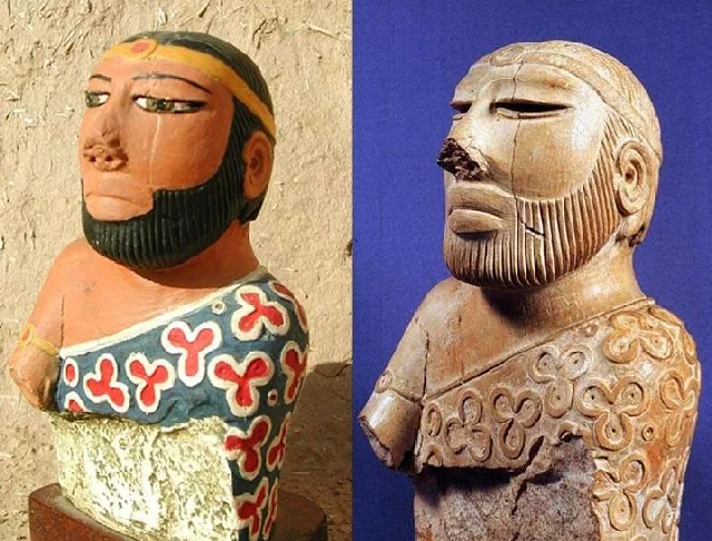 蓋染的歷史則可追溯至公元前2500年,目前收藏在巴基斯坦國家博物館、從信德省的摩亨佐達羅(Mohenjo-daro)考古點出土的祭司王半身雕刻像(Priest-King),身著一件單肩服飾,被認為是蓋染服飾。上頭的三葉草圖案是稱為「Kakkar」的圖騰,從巴基斯坦到美索不達米亞、甚至古埃及圖坦卡門的座椅都有類似的圖樣。