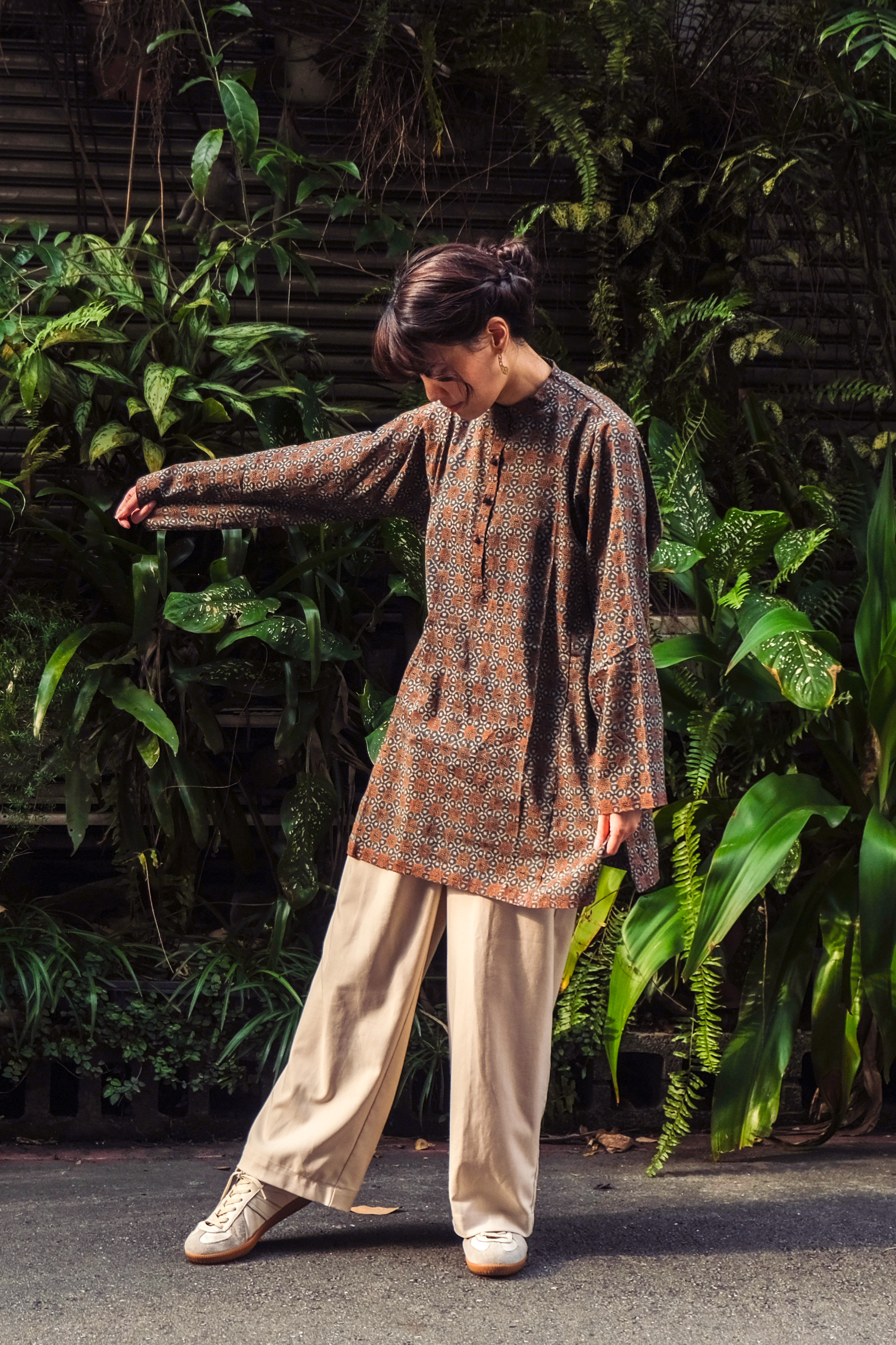 Tunic或Kameez則是一種束腰外衣,長度通常到膝蓋,並且是直式剪裁,兩側沒有鑲片,更像是一件長襯衫。南南的Tunic長度及膝,Kameez的長度會超過膝蓋。