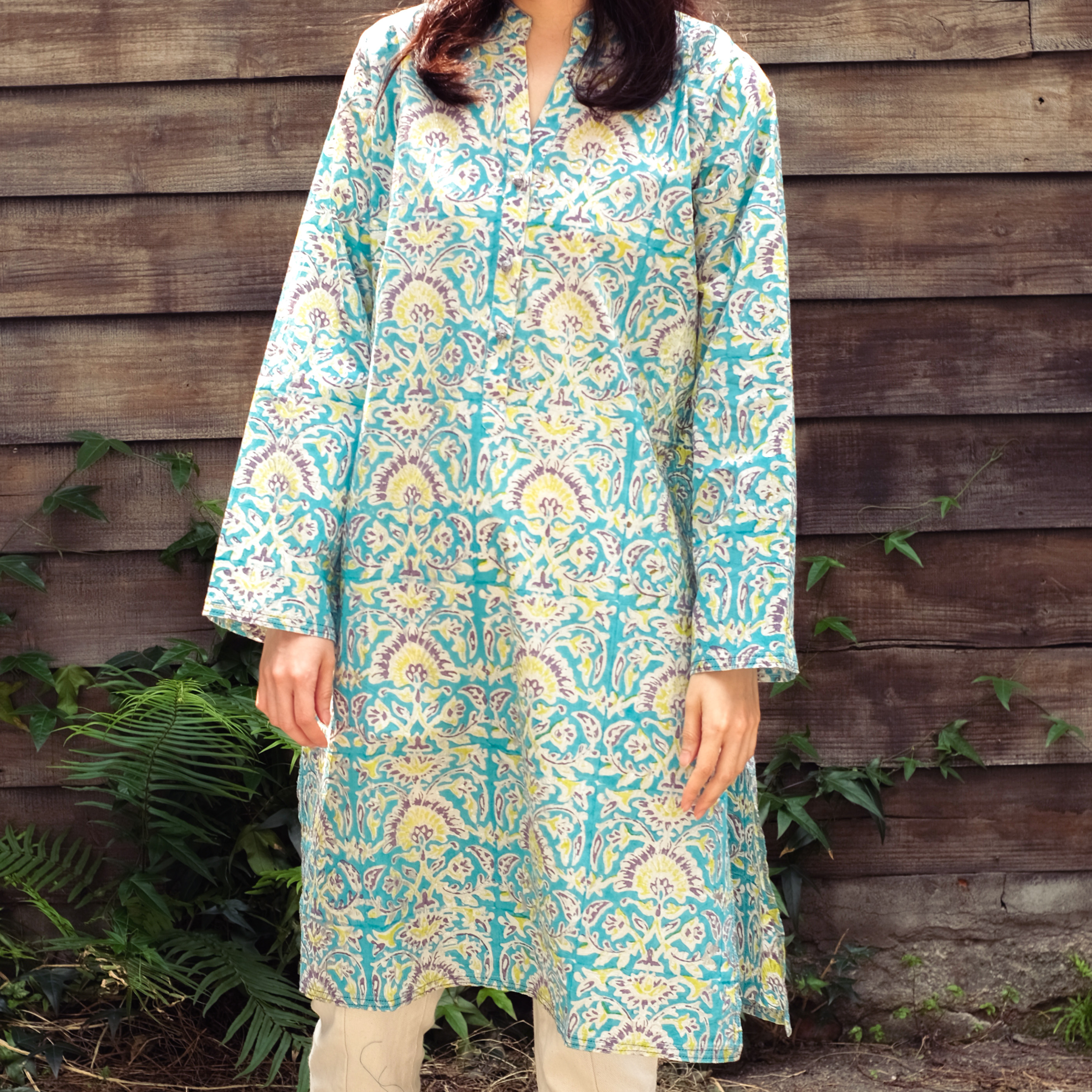 Kurta與Kurti是南亞常見的傳統服飾,形式為寬鬆的上衣,兩側有接合的側幅,為男女通用的服裝。但兩者有些微差異:前者長度可到膝蓋或小腿,穿起來特別飄逸;後者則是短版,長度在腰臀以上,通常會搭配一件褲子。