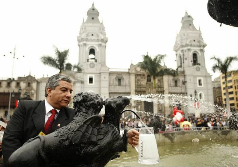 圖 / 皮斯可日當天首都利馬市政廳前的噴泉水,全部換成皮斯可酒供人飲用
