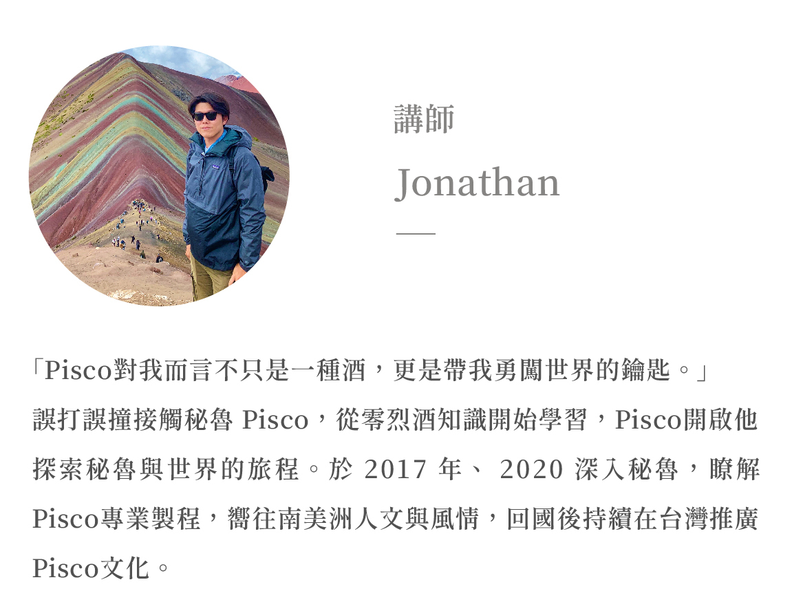 祕魯Pisco工藝風味學|講師&合作餐廳