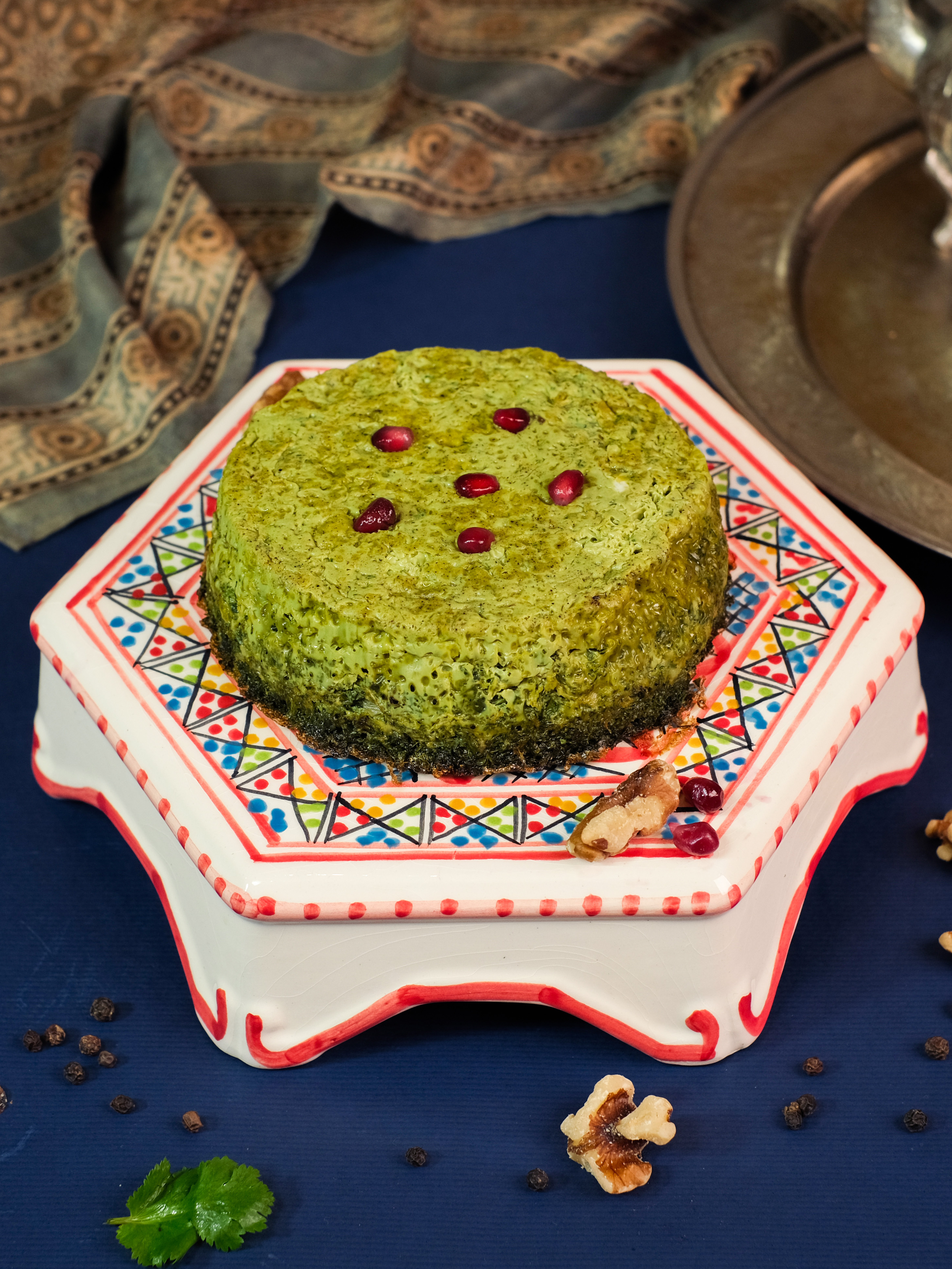Kuku 是伊朗人從齋戒月、復活節到諾魯茲新年都會吃的烘蛋,翠綠的顏色來自歐芹、香菜、蒔蘿等綠色香草,波斯文化認為這些草藥象徵了重生或新的開始,並放上核桃與蔓越莓增色,有著香草的清新與溫潤。這道料理冷熱皆宜,搭配酸奶或優格更完美,伊朗人通常會搭配麵包或米飯一起吃。