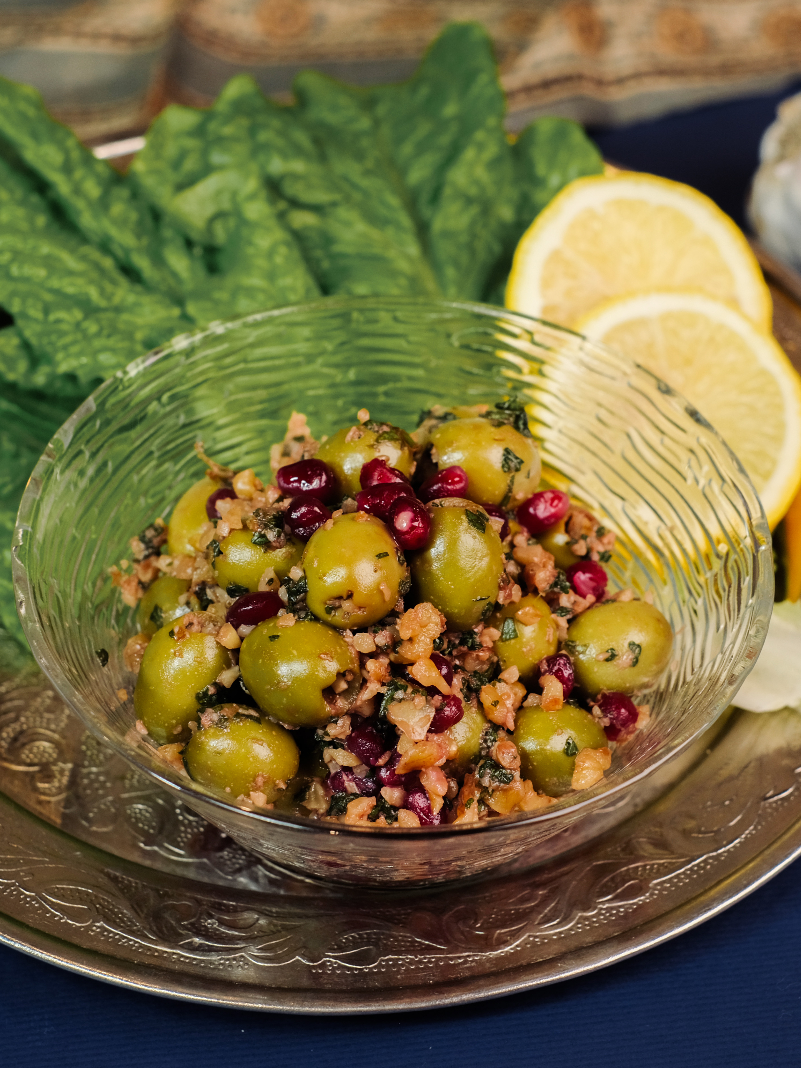 這道冷菜發源於伊朗北部的吉蘭省,將綠橄欖與紅石榴、核桃碎、橄欖油、薄荷、巴西里一同醃漬,絕妙的搭配,讓酸甜的紅石榴平衡掉綠橄欖的生澀,吃起來相當清爽開胃,除了作為開齋菜,也是每年3月21日波斯新年「諾魯茲節」的經典料理。