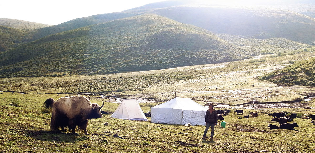 千年來,居住在數千公尺的青藏高原裡,空氣稀薄、溫差劇烈,氂牛與山羊成為他們在高原生活中最重要的同伴。藏人們運用氂牛毛捻線編織成帳篷,用羊毛做成毛氈地毯與雨衣,而犛牛絨則成了珍貴的配件。犛牛提供了牧民們食衣住行中所需的一切、更是維繫牧人生活的重心。
