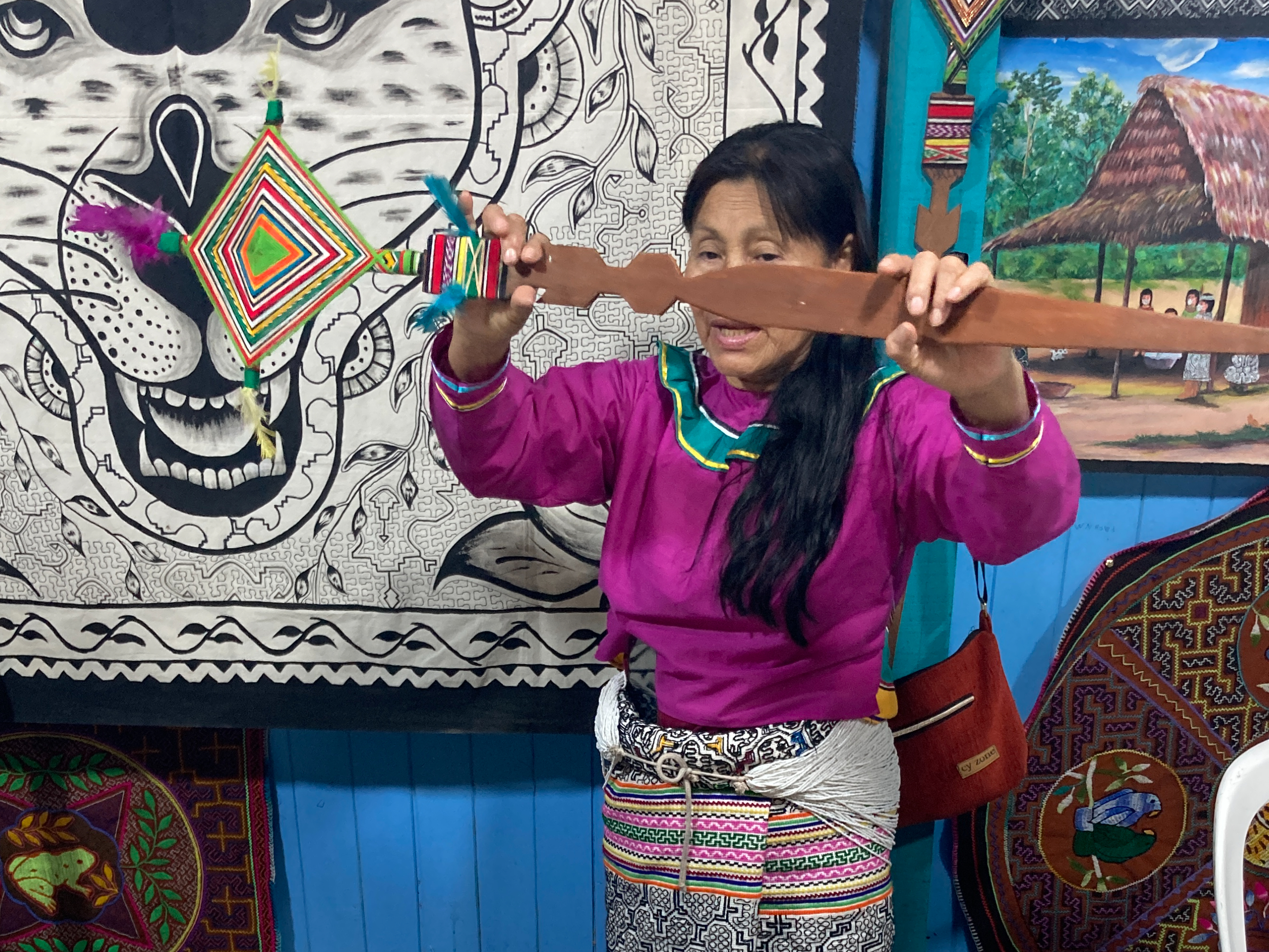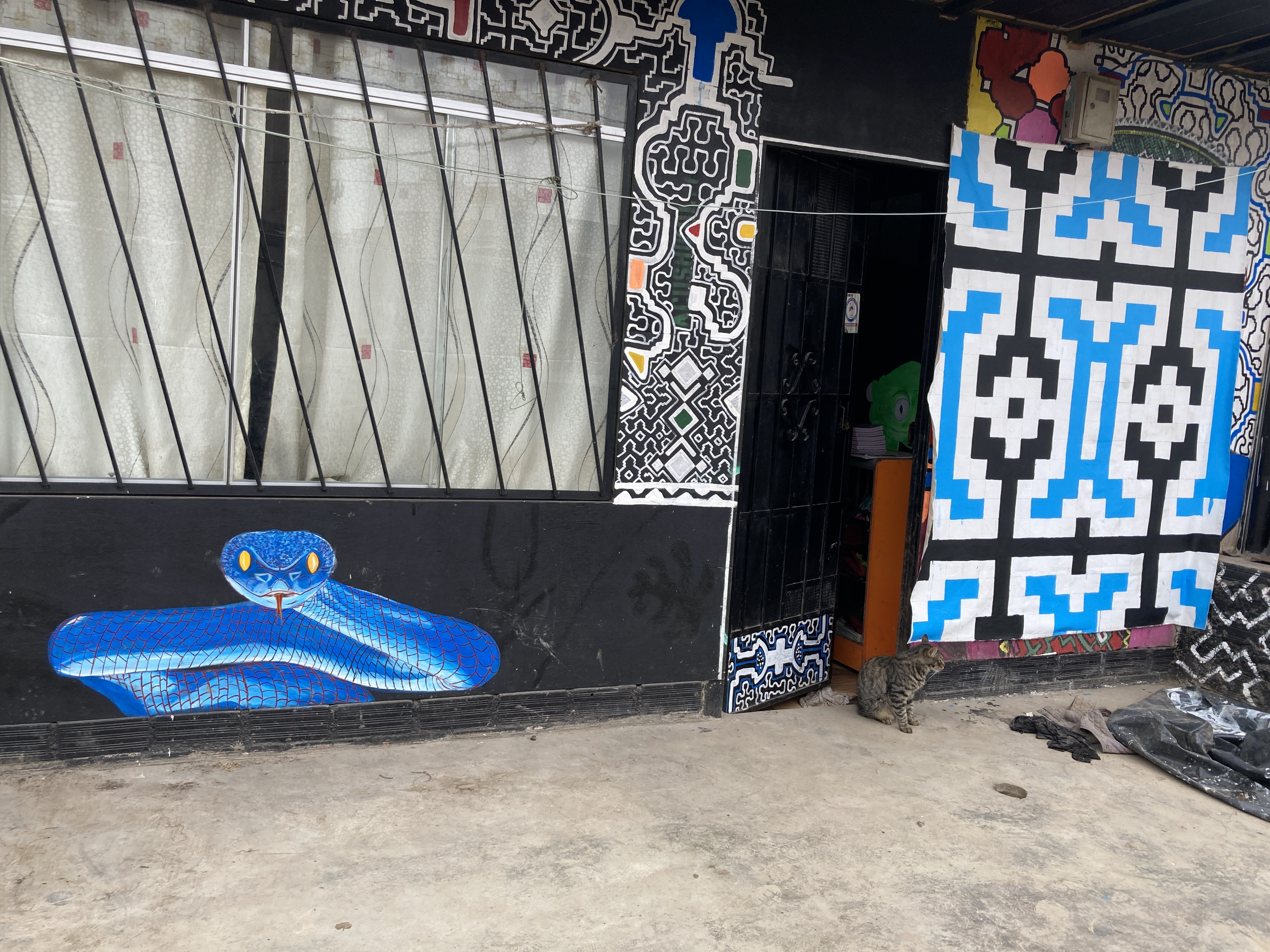 這次接待我們的Wilma,出生於烏卡亞利河沿岸的Panaijo部落。她的先生在20幾年前突然失蹤,可能私自加入游擊隊或被他們抓走,她曾透過死藤水儀式向薩滿尋找線索但沒有下落。她只好帶著6個月大的孩子離開部落到利馬討生活,輾轉來到坎塔加洛,目前製作工藝品維生,也對外來遊客推廣西皮波的傳統文化。