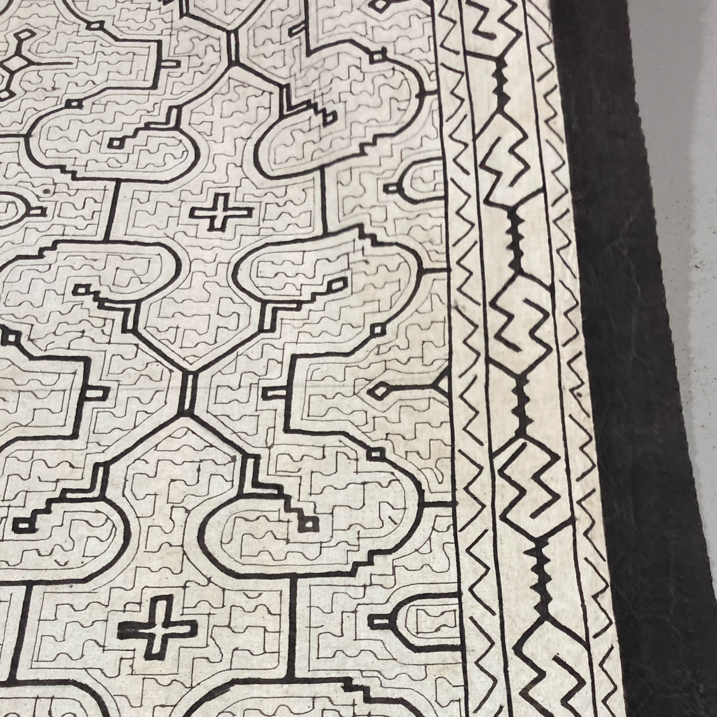 Wilma以樹皮跟泥巴煮成顏料,一邊唱歌一邊在布上畫出祖先流傳下來的Kene圖騰:較粗的直線稱為Shoukere,代表領域的範圍;彎曲的線條為Mayakere,粗的是河流、細的是河岸;斜的對角線為Tayankere,代表祖先走過的路,小小的方形則代表一個個家族,就連亞馬遜特有的臭鼬豬跟南美貘都畫在裡面。整張圖的四周則畫上鋸齒或三角形,稱為Anaconda,代表蟒蛇或食人魚的牙齒,具有保護的作用。這些圖騰像是一張儀式樂譜,傳遞與保留傳統薩滿樂曲,作為治療及與自然世界交流的工具。