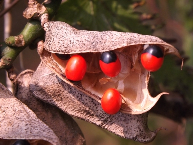 這種種子有著光亮而鮮豔的紅色,有些則有黑色斑點。傳統認為整顆紅色的代表著女性,而帶有黑色斑點的則代表男性,象徵著生物的起源與生育的能量。除了帶給人好運外,種子有還有著治療功能,其汁液被用作治療結膜炎等的眼部疾病,是雨林生活中的重要種子。