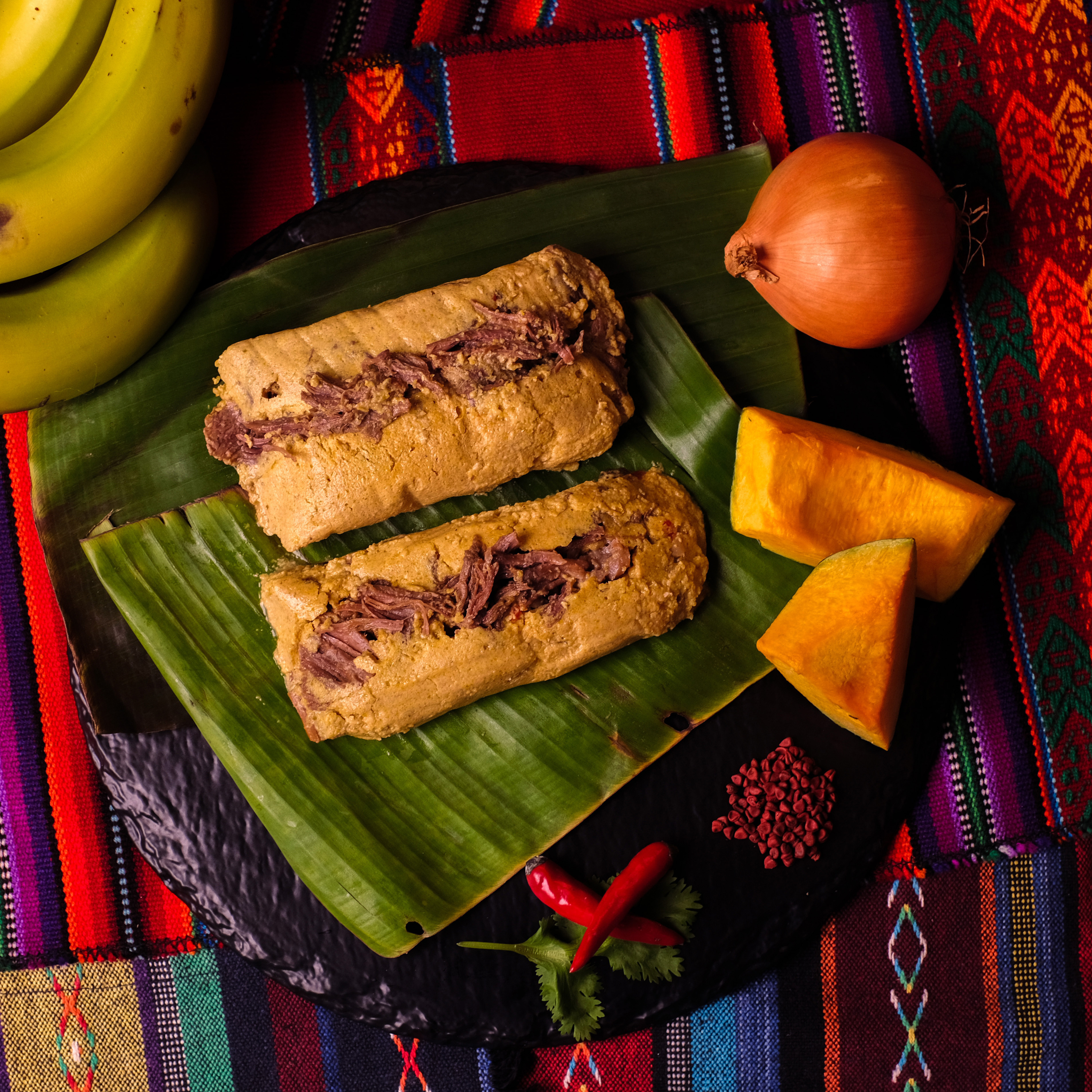 成分:馬鈴薯、番茄、洋蔥、蒜頭、胡椒、多香果、丁香、雞肉、麵粉、鹽、油、胭脂樹籽、綠辣椒、香蕉葉