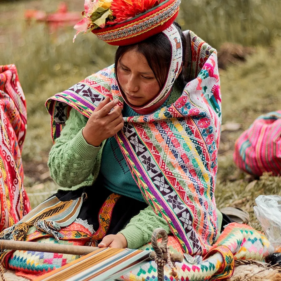 南美安地斯民族的揹巾老布Aguayo,傳統以羊毛手工編織,具有繽紛的配色與幾何圖案,其中可分為布料邊緣「t'irja」、中間的純色「pampa」、帶有圖案的「salta」三個設計區塊,顏色通常代表用途或製造地區。玻利維亞、秘魯、阿根廷和智利北部等地的安地斯民族將Aguayo用來揹負重物或嬰孩,也是印地安傳統服飾的象徵。