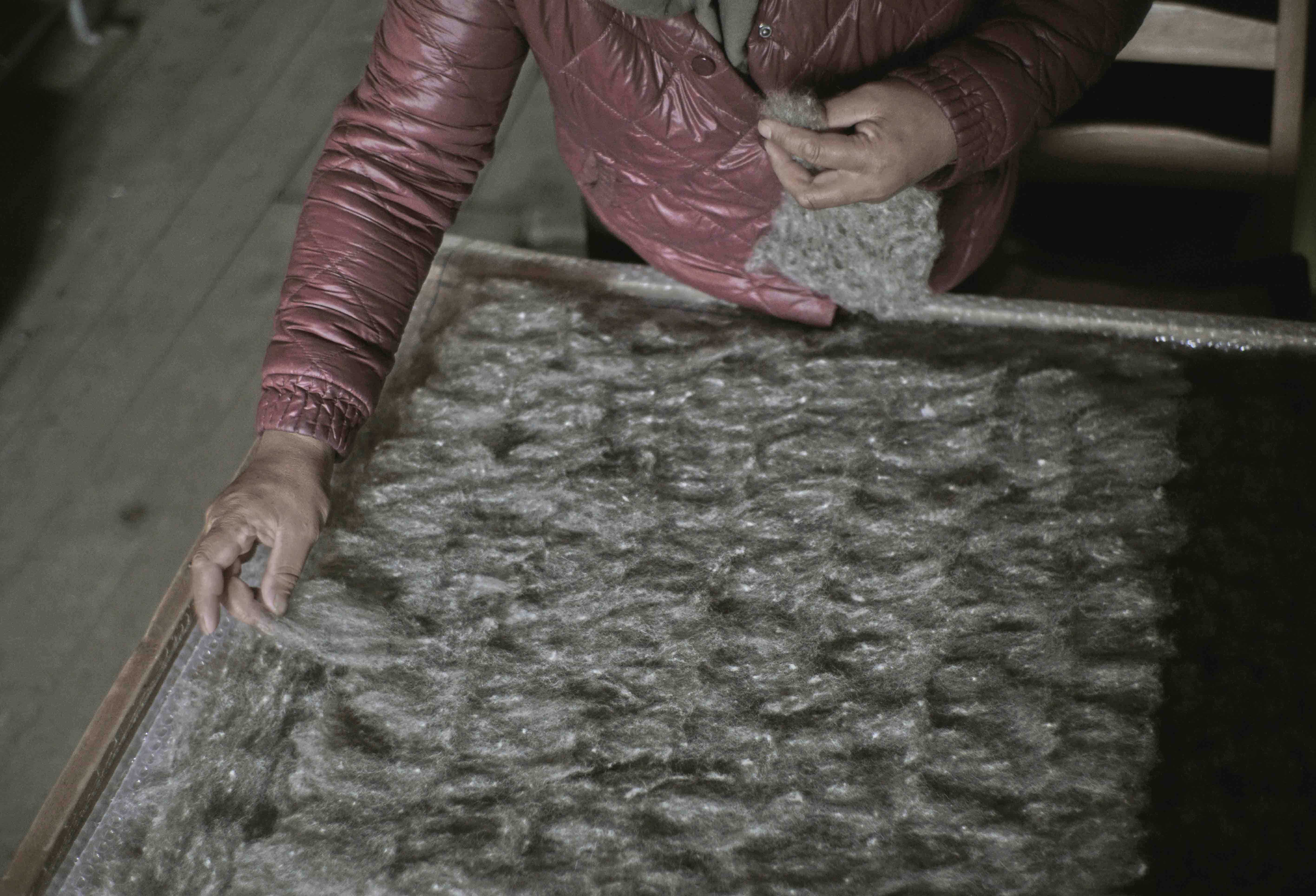 毛氈之所以可能,是因為天然動物纖維上那微小而顯得神秘的「毛麟」構造。當有了濕度、熱度與壓力,張開的毛麟會讓彼此靠近的毛糾結起來,從而無法分離,形成一個個美麗、沒有接縫處的奇妙軟雕塑。