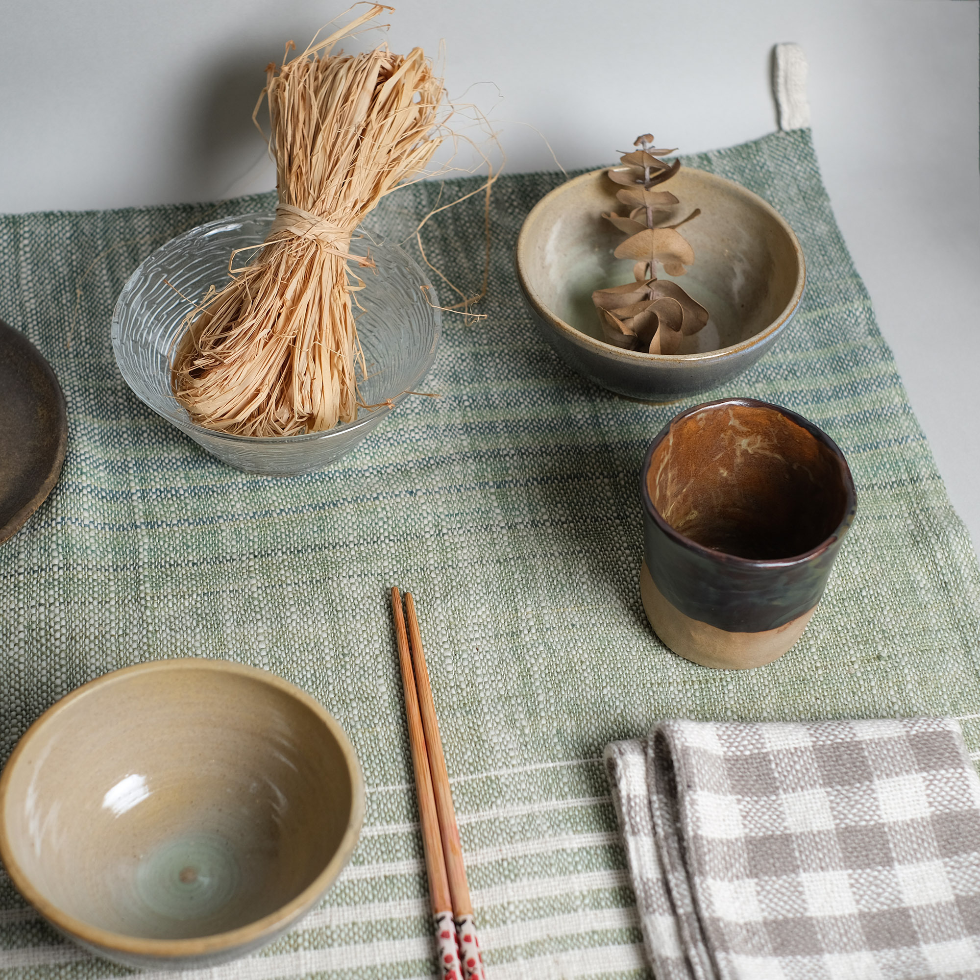 這款植物染手帕巾,與寮國北部村落的工藝師合作,使用傳統手織機編織與天然植物染。小方巾可當作擦汗的手帕,或家居小布,配色淡雅,擁有舒適親膚感。