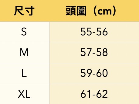 • 帽圍尺寸(帽內含調整帶,可微調1-2公分,建議可選擇較大的款式)