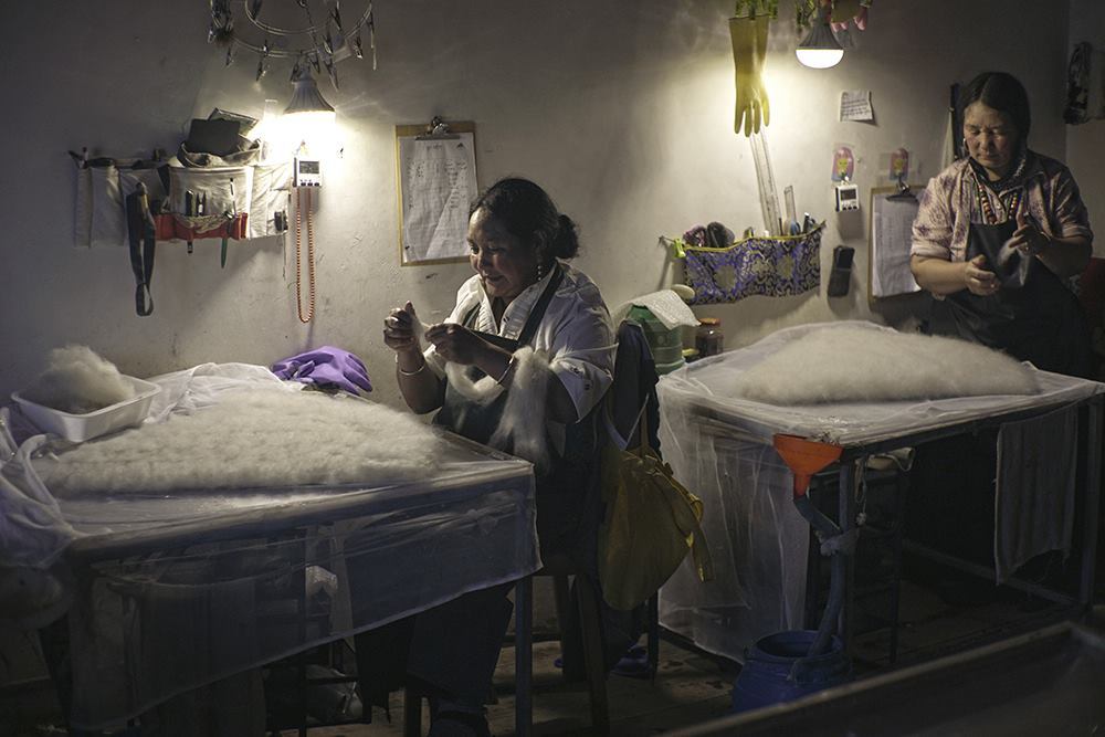 犛牛是支持藏族家庭在高原生存最關鍵的存在,隱匿於粗獷外表之下,藏著一層細細絨毛:犛牛絨。每年每頭身上只能收集不出幾百克,更顯得牠的珍貴與難得。